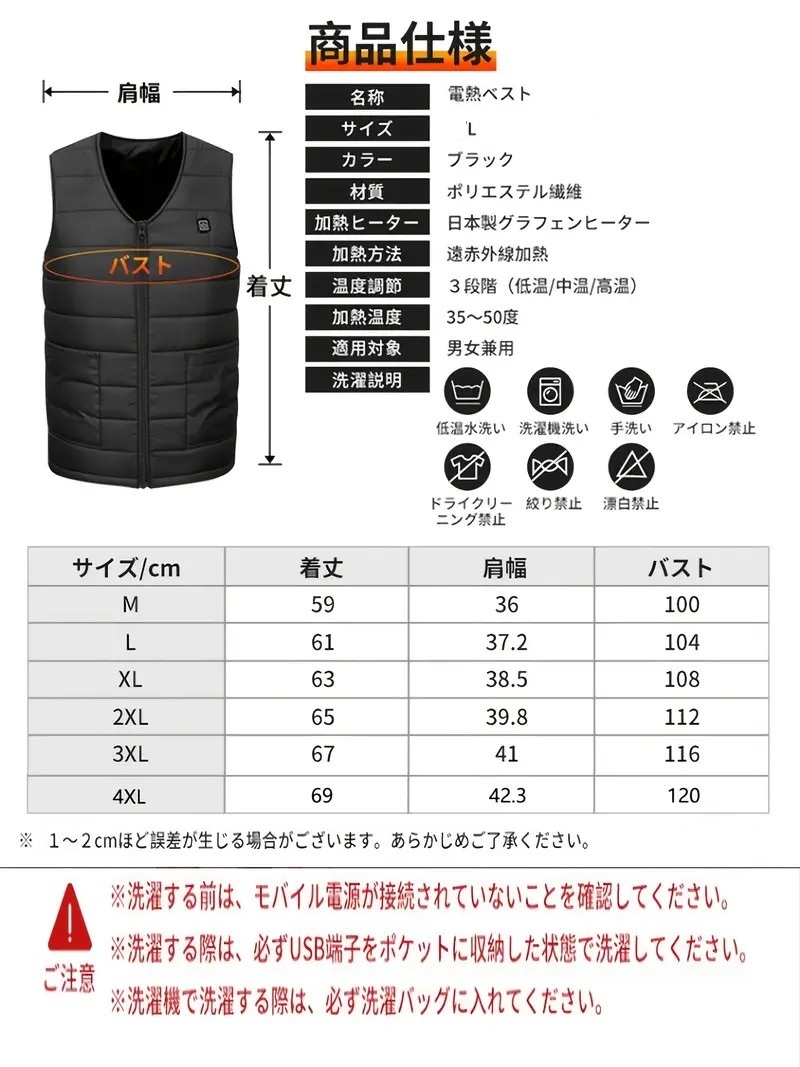 ☆新品未使用 軽量Vネックヒーターベスト Lサイズ☆送料無料、即発送可