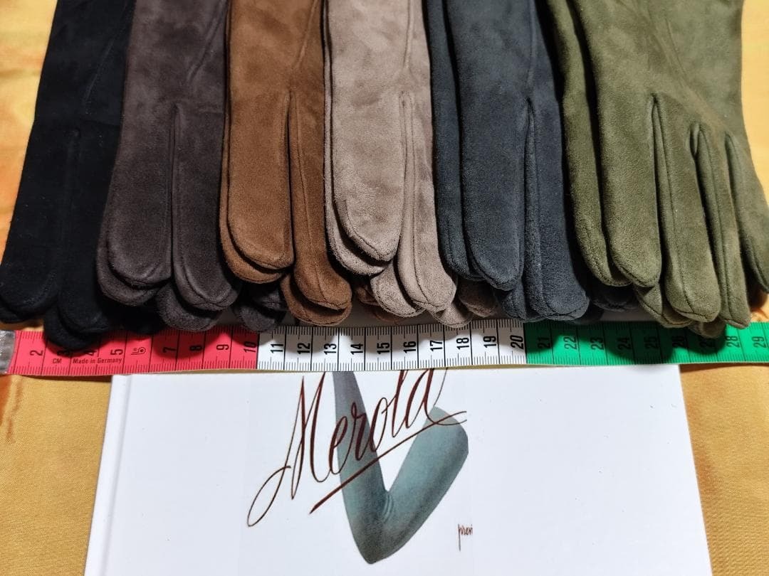 スエード面の肌ざわり・風合い・なめらかさ・やわらかさが特徴、タイトめに手指にそったラインの美しさは上品で見栄えがします。