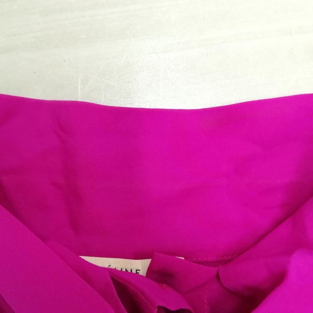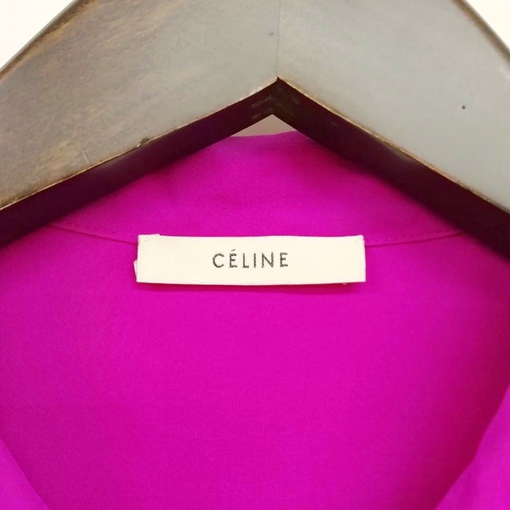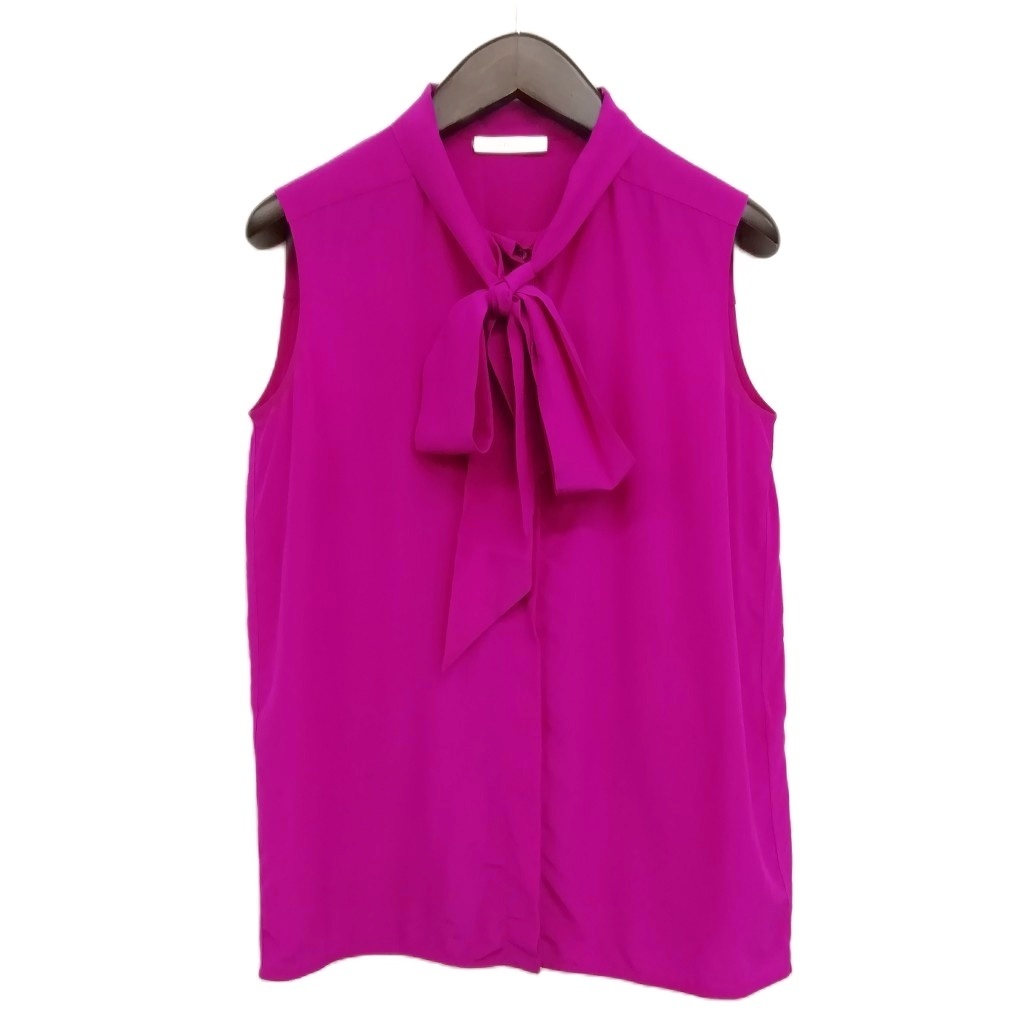 セリーヌ CELINE フィービー期 ボウタイ リボン ブラウス シャツ ノースリーブ シルク 36 パープル系 レディース