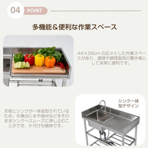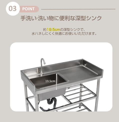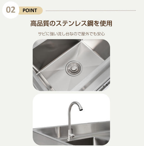 • 【高品質のステンレス鋼を使用】流し台 ステンレス製 サビに強い流し台なので屋外でも安心
