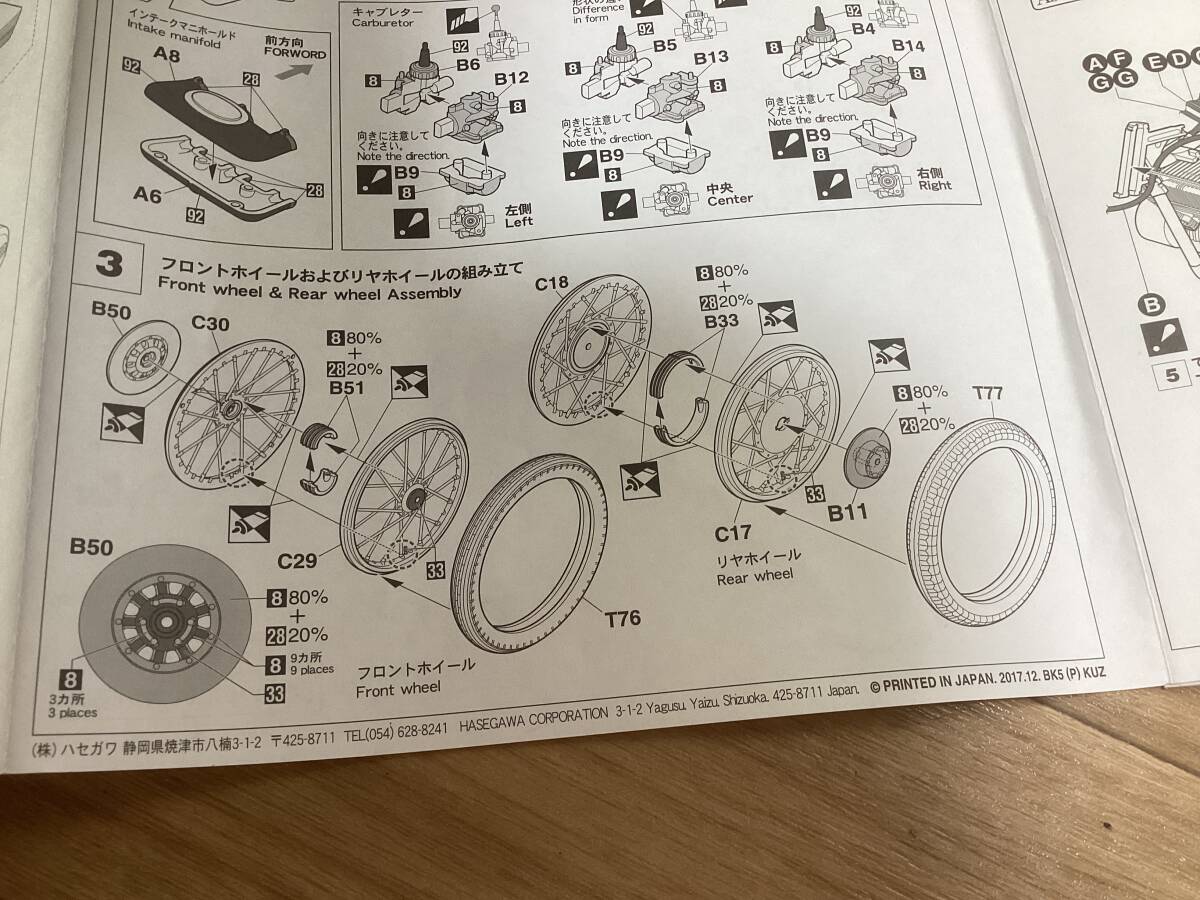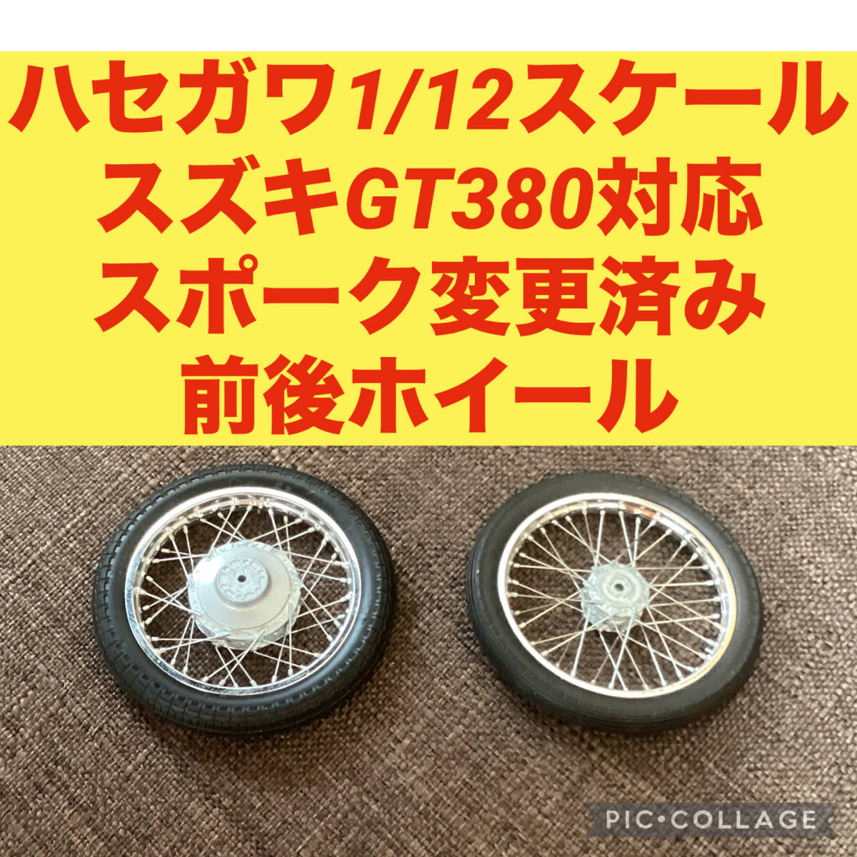 ハセガワ1/12スケールプラモデル スズキGT380用スポーク変更済み前後ホイール(落札者様同パーツ先発送条件有り)