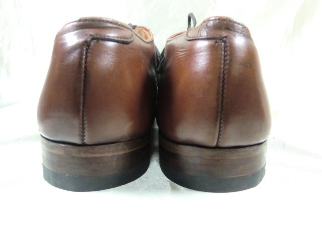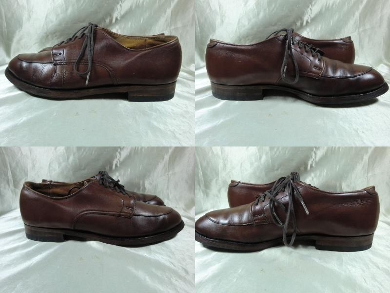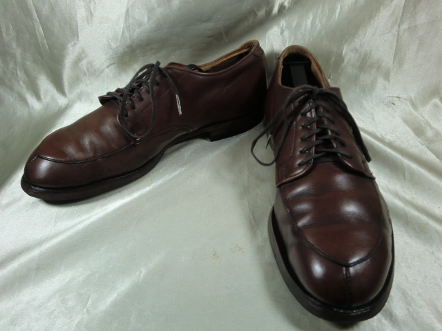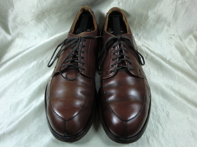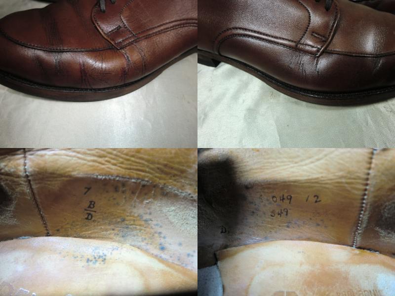 | 旧ロゴのAlden(オールデン) 549 Vチップです。 アッパーのも柔らかくとても履きやすいモデルです。 アッパーの外側にひび割れがあります。 内側の踵部分に破れがあります。 踵は自己修理にて張り替えをしています。(ゴムのみ) 張り替えわしはてからは使用していないので張り替えゴムは未使用です。 ハーフソール入手時から貼られていました。 傷、汚れ、踵の減りなどもありますがまだまだご使用頂けます。 試し履き後に「サイズが合わない・(大きい、又は小さい)」などの申し出は受け付けしませんのでサイズをよくご確認下さい。 シューキーパーは撮影用で付属されません。 同梱も可能で2点まででしたら80サイズでの発送が可能です。 3点から100サイズになります。 発送サイズは60サイズになります。 表記サイズ・US 7 アッパー素材・カーフ (子牛の革) アウトソール全長・約 29cm |