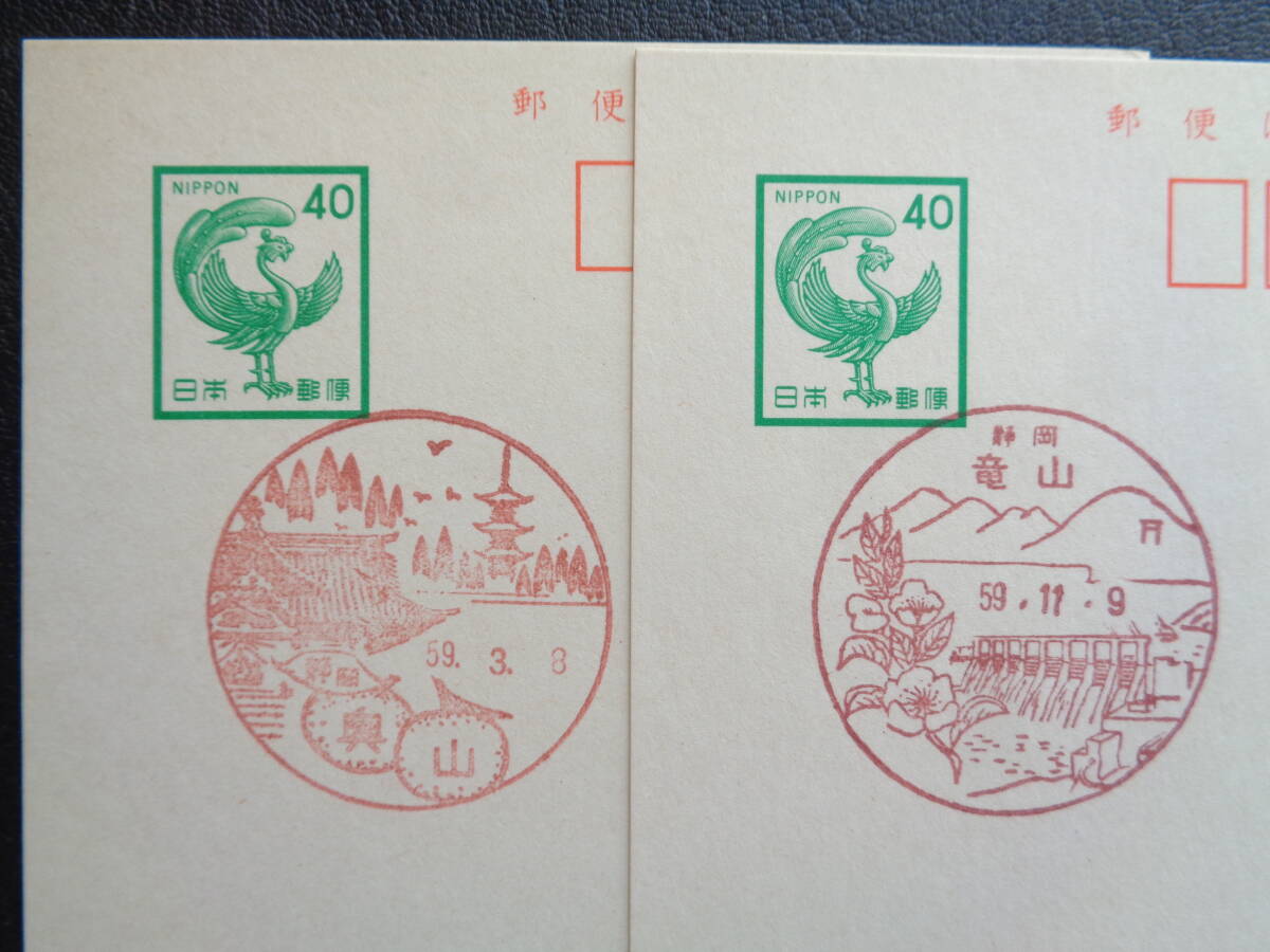 鳳凰はがき    初日印/風景印    静岡県2枚     竜山/S59.11.9    奥山/S59.3.8