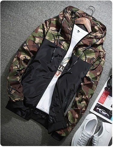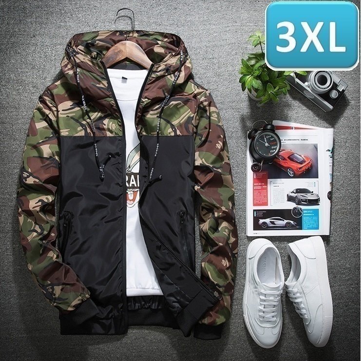 ☆ 【174】 迷彩 ウィンドブレーカー フード付き グリーン 3XL メンズ ナイロン カモフラ 柄 アウトドア 防風 軽量 ジャケット