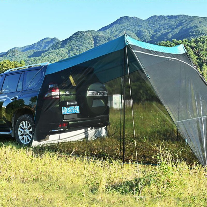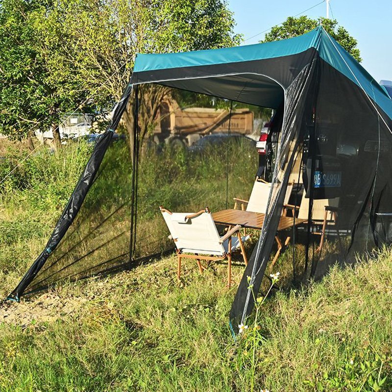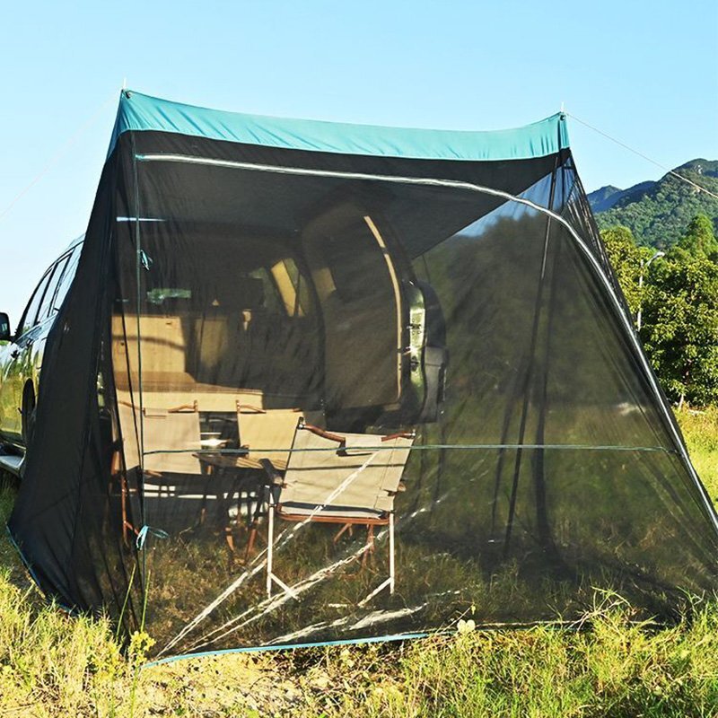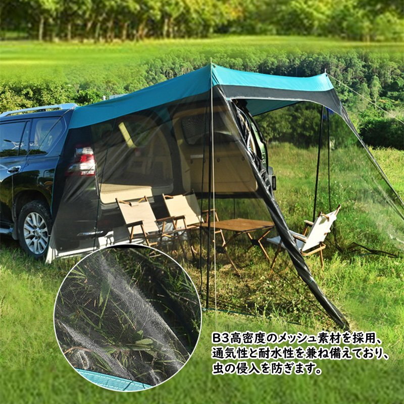 カーサイドタープ 車用タープトランクテント 車と連結 1-6人用 通気のB3メッシュ カーオーニングサンシェルター 虫よけ 簡単設置 キャンプ