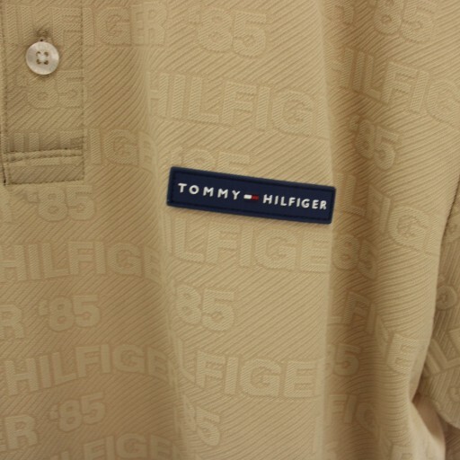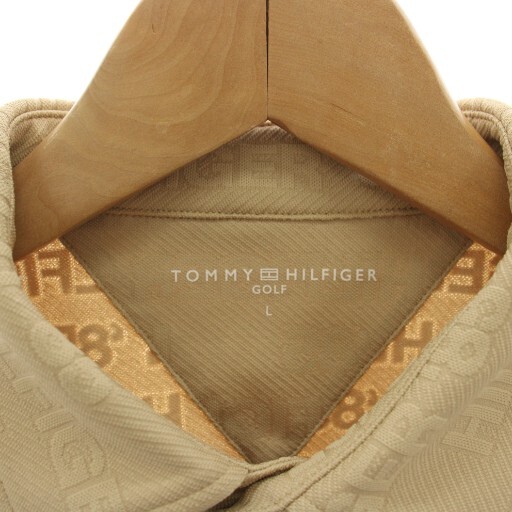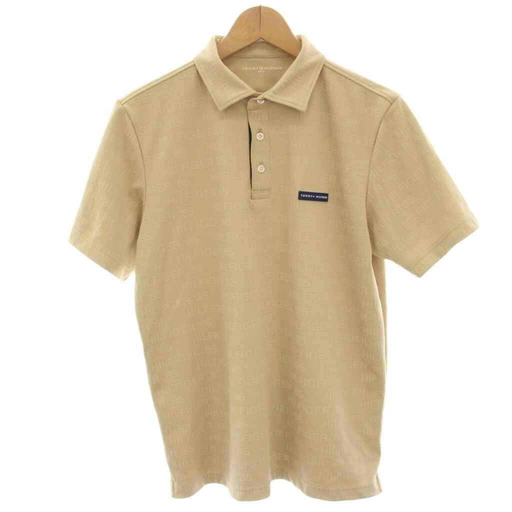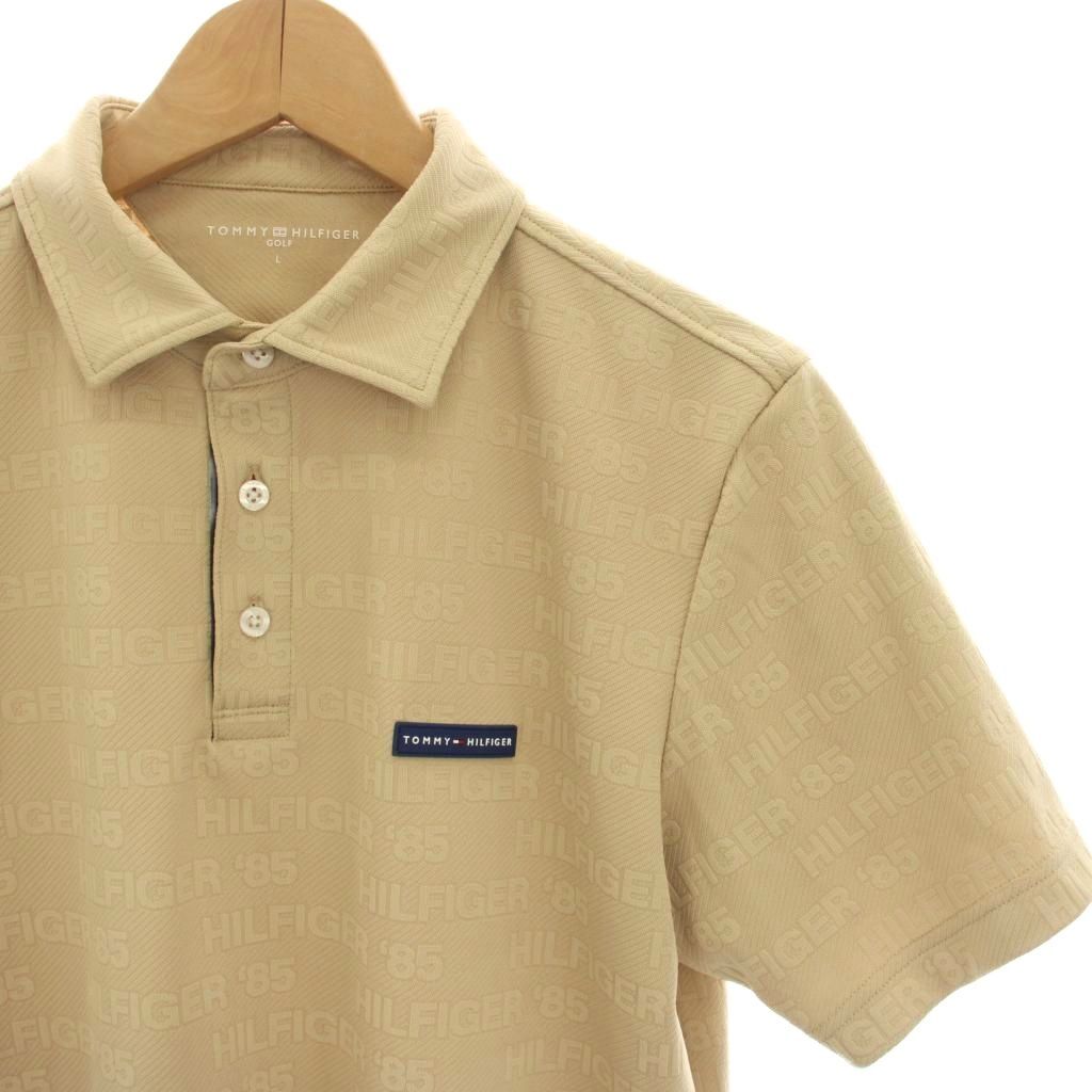 トミーヒルフィガー TOMMY HILFIGER GOLF 凹凸ロゴジャガード ポロシャツ カットソー ゴルフウェア 半袖 L ベージュ THMA413 /HN
