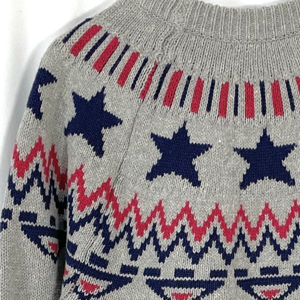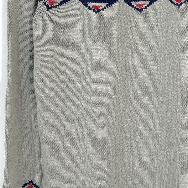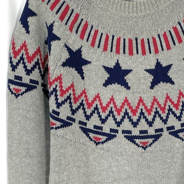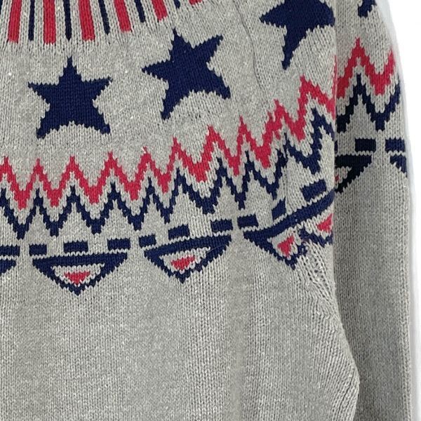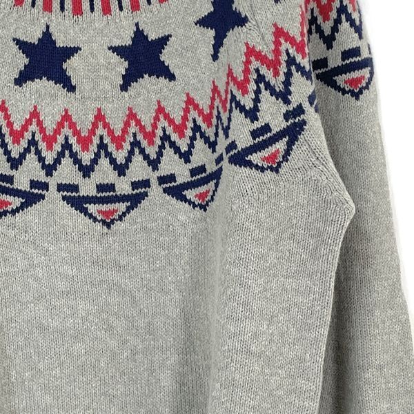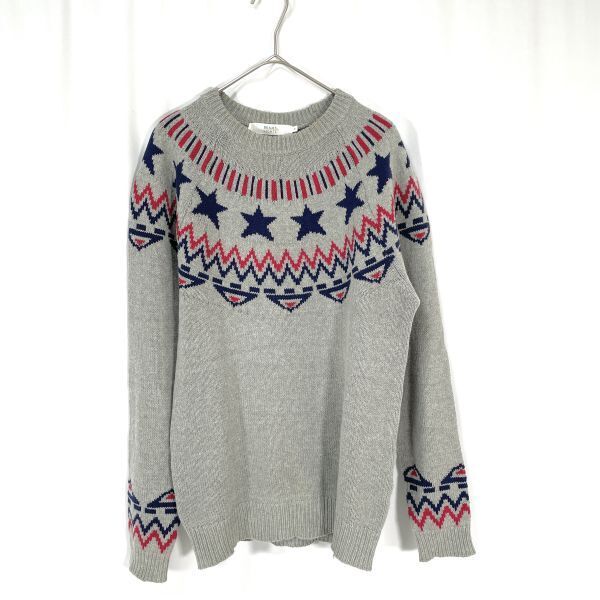 【商品説明】 BEAMS LIGHTS(ビームスライツ)のノルディックデザインニットです。 ネイビーとレッドのスター柄がアクセントになった、冬らしいウォーム感のあるデザイン。 柔らかなコットン×アクリル素材で軽く、チクチク感が少ない快適な着心地です。 カジュアルにもきれいめにも合わせやすい万能な一着です。 カラー:グレー×ネイビー×レッド 素材:綿60%、アクリル40% サイズ:S(平置き採寸) 肩幅 約45cm 身幅 約43.5cm 袖丈 約53.5cm 着丈 約63cm シーズンムードを高める人気のノルディック柄ニットです。 画像にあるものが全てです。 ★状態 やや使用感がありますが、特に目立つダメージ無く綺麗な状態です。