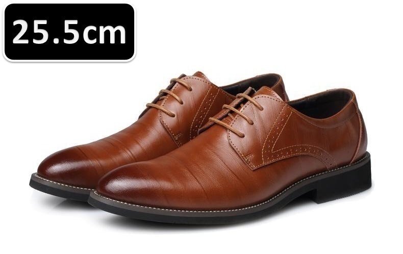 メンズ ビジネス レザー シューズ ライトブラウン サイズ 25.5cm 革靴 靴 カジュアル 屈曲性 通勤 軽量 柔らかい 新品 【208】