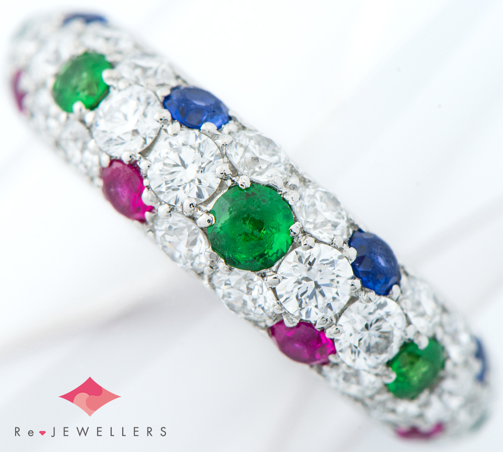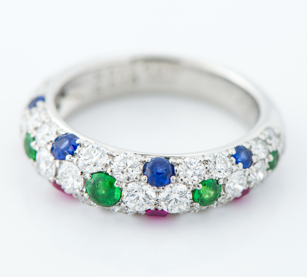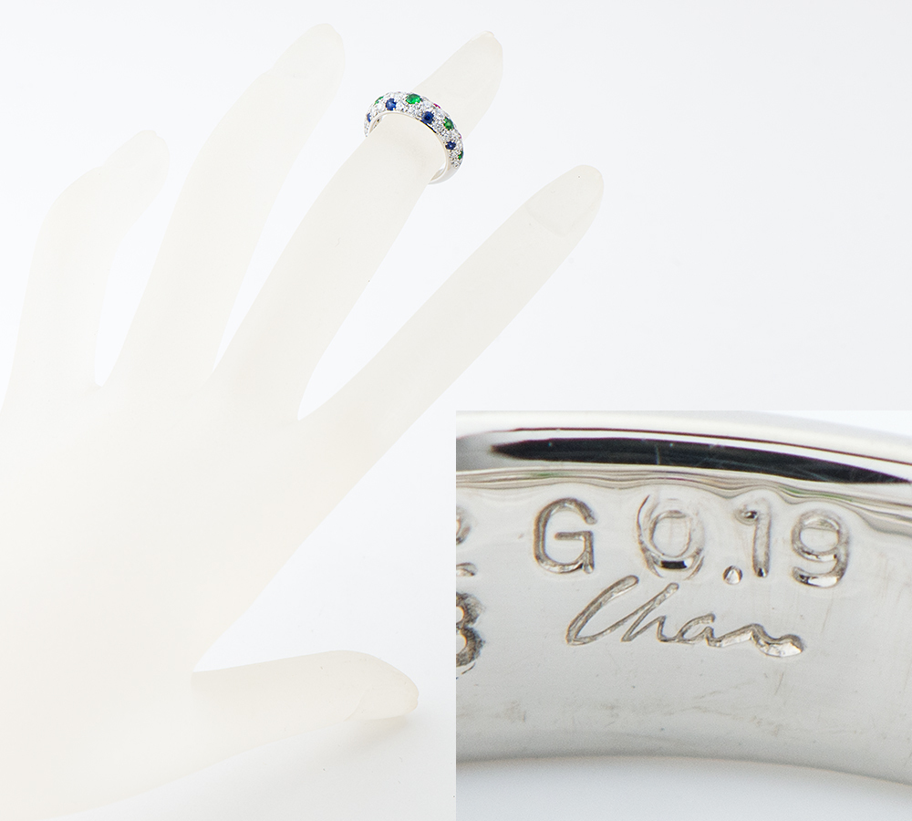 コメント:グリーンガーネット(計0.19ct)、ルビー(計0.12ct)、サファイア(計0.13ct)がセットされています。