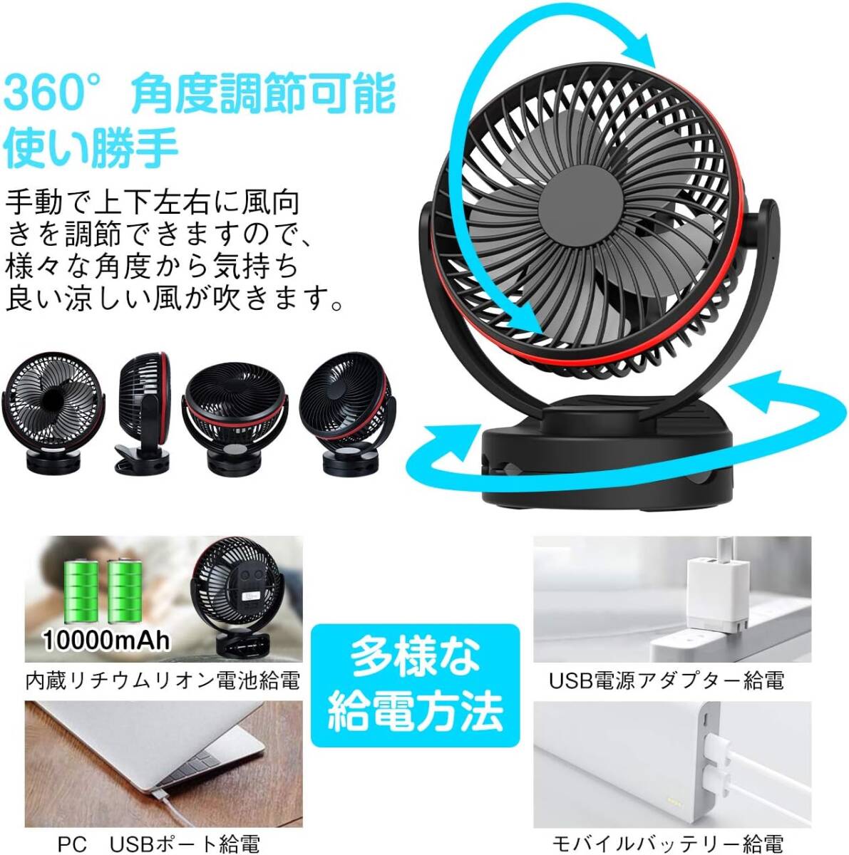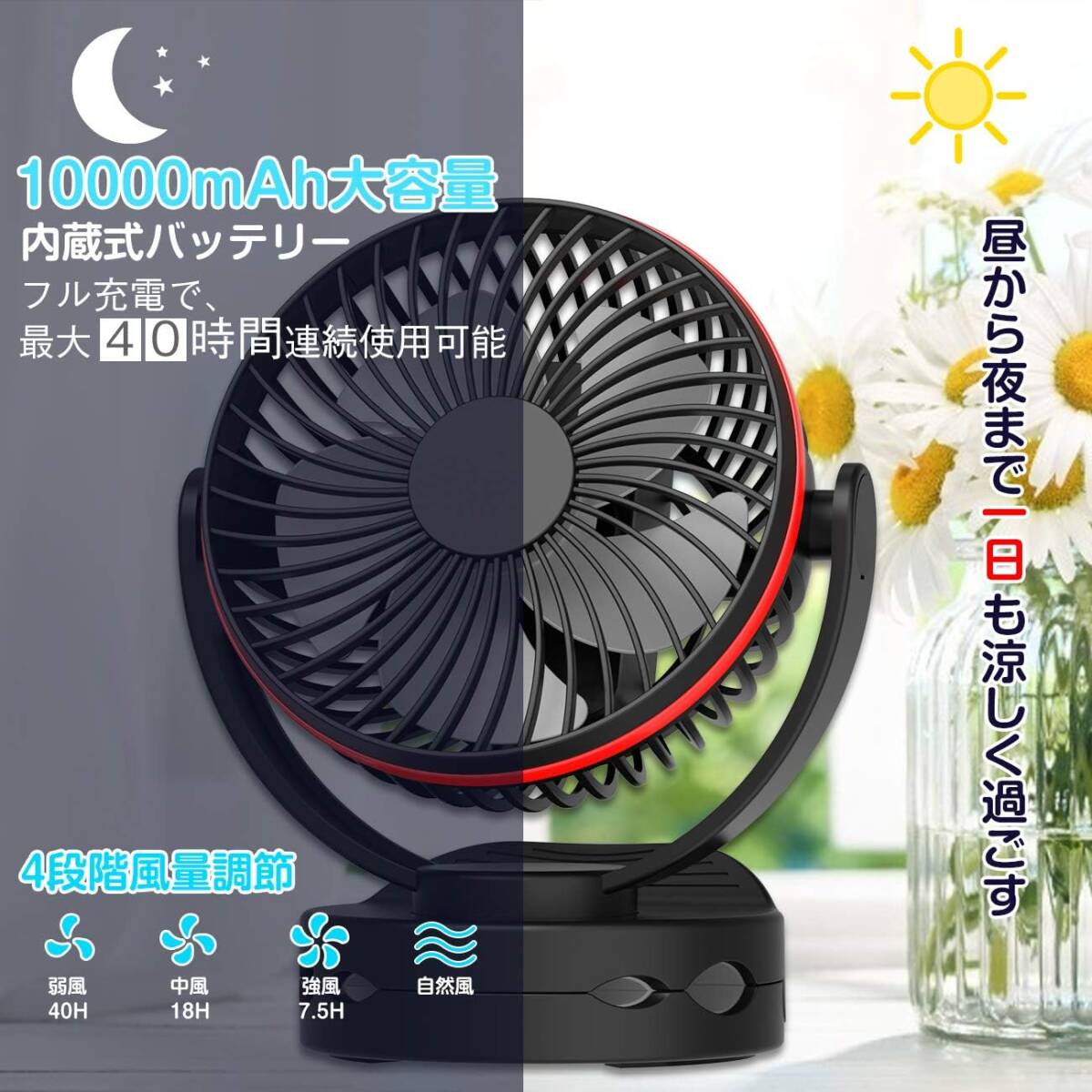 機能性重視 USB扇風機 10000mAh大容量 卓上扇風機 4段階風量調節 2