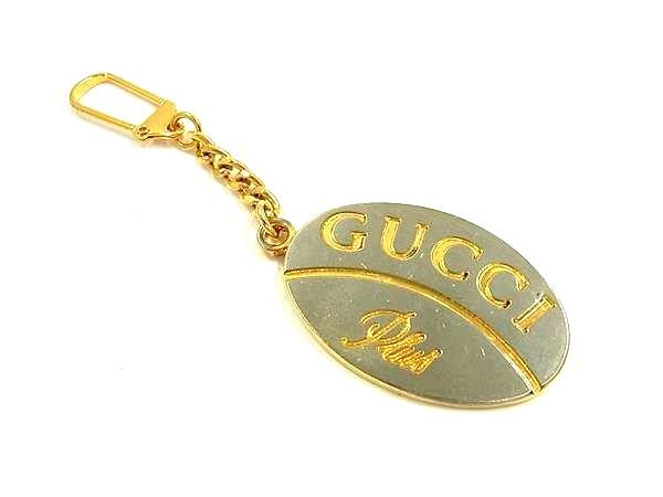 ■美品■ GUCCI オールドグッチ ヴィンテージ グッチプラス キーホルダー ストラップ バッグチャーム シルバー系×ゴールド系 DJ8768