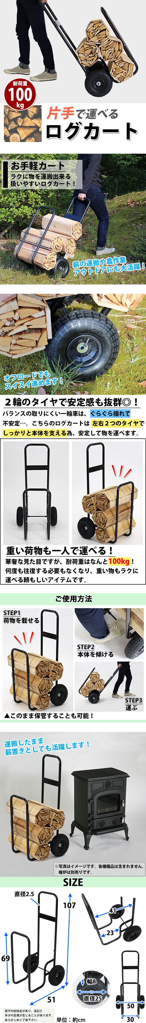 | 商品名 | ログカート 耐荷重100kg スチール製 キャリー カート 薪運搬車 ログキャリー ログラック ツールカート 焚き木 薪 台車 薪を運ぶ 運ぶ 薪置き 薪ラック 薪棚 運搬 移動 ストーブ関連用品 薪ストーブ 暖炉 薪割り タイヤ 車輪 コンパクト daishalog |
