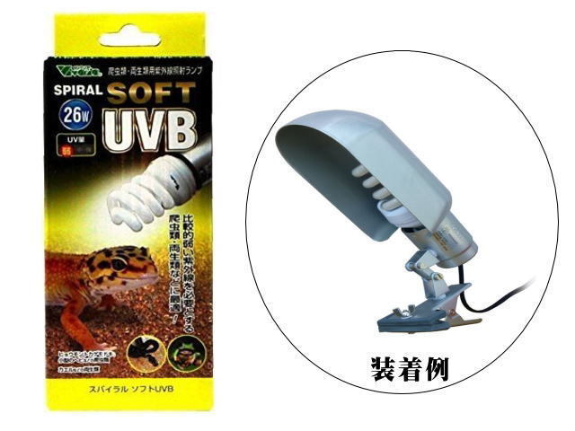 | 商品名:スパイラルソフトUVB26W/クリップスタンド・ランプカバーセット ■UV量は(弱)です。 ジ紫外線弱めです。 比較的弱い紫外線を必要とする爬虫類・両生類に最適です。 自然界での多くの爬虫類や両生類は太陽光に照らされて 生活しております。 太陽光には紫外線(UV)が含まれており、新陳代謝を促進します。 本品は、ヘビやヤモリ、両生類等の紫外線を必要とする 生体の屋内飼育下で不足しがちな紫外線を補います。 ランプカバー、クリップスタンド太陽NEOもセットでお届け致します。 ■商品仕様 サイズ:Φ60x130mm 口金:E26 用途:室内用 セット品:クリップスタンド太陽NEO、太陽NEOランプカバー ■注意点 本品はケージ内を暖める能力はありません。 水滴の飛散で破損の恐れがあります。 紫外線効果を保つために、使用1年を目安に交換をお勧めします。 |
