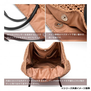 | ナチュラルな風合いで、ほどよいクッタリ感がカワイイ。カジュアルに持てるので普段使いやホリデースタイルにもぴったりです!見た目以上にたっぷり入って実用的!ついつい荷物が多くなってしまう方にもオススメです。荷物が少ないときはぺたんこになり、荷物が多くなったら素材の柔軟性で大容量の収容力を発揮してくれますよ。 長財布、化粧ポーチ、手帳、スマホ、水筒、傘などももちろん収納可能な大容量バッグです! 本体部分に紙素材&キャンバス素材を採用して柔らかさが魅力のトートバッグです! デイリーからレジャーシーンまで幅広く活用できる商品に仕上がっています。 夏コーデにはカゴバージョン、冬コーデにはキャンバスバージョンをプラスするだけ季節感を演出してくれるバッグです。 【注意事項】 ※新品の状態でのお届けになっておりますので、画像よりぱりっとした固めの印象になります。数回使用していくうちにくったり感となります。あらかじめご了承下さいませ。 ※ペーパー素材は手編みで作られているため、形やサイズ、色合い、質感に個体差がございます。手編みの自然な風合いとしてご理解下さいませ。 ※またペーパー素材の性質上、生地を織る際の糸の継ぎ目や多少のほつれ、他繊維の混紡が生じる場合がございます。大変申し訳ございませんが何卒ご了承頂けますようお願い申し上げます。 ※水洗いはしないでください。 ※汗ばんでいるときや雨天時など衣服が濡れているとき、薄い色味の服とバッグがこすれると、色がうつる可能性がございますのでご注意下さい。 ※熱や高温を避け、ベンジン、シンナー等の揮発性のあるもので拭かないで下さい。 ※商品画像について、ご覧頂く際の環境やお使いのパソコン環境及び携帯電話の動作環境などにより、商品画像の色が実際の商品と若干異なる場合がございますのでご理解の上ご注文お願い致します。 |