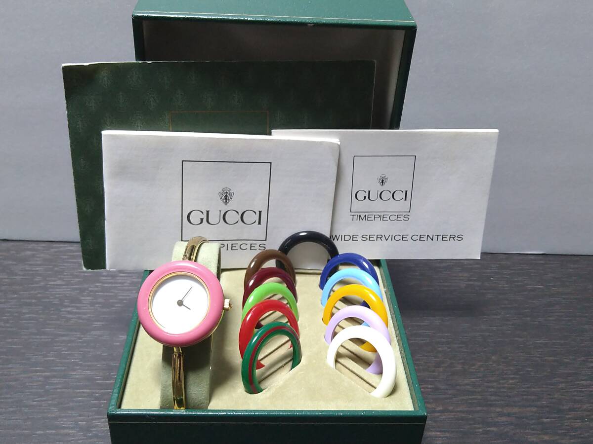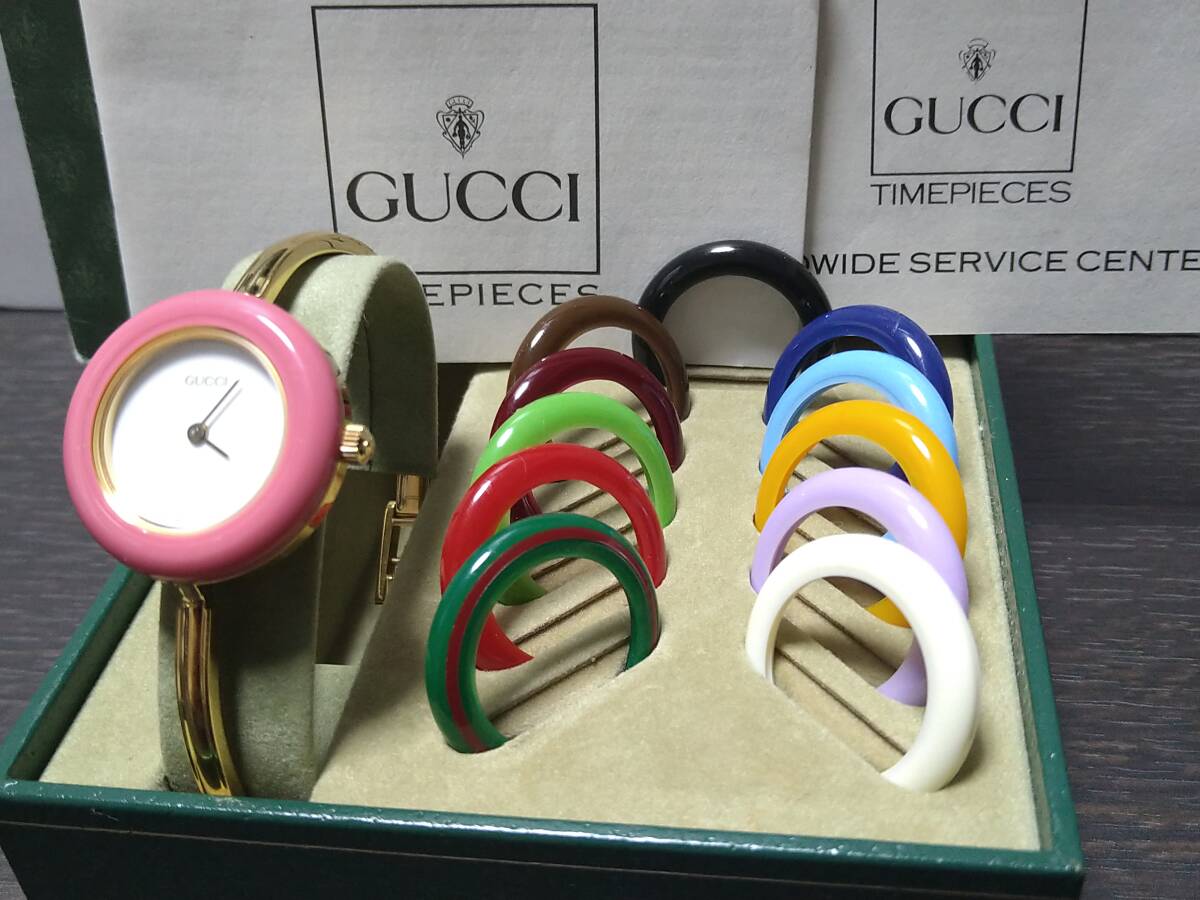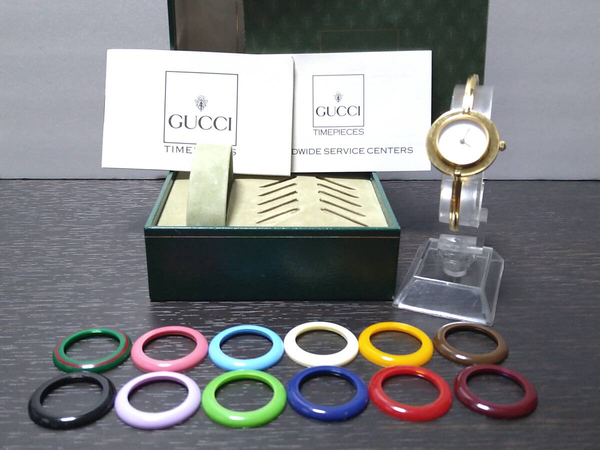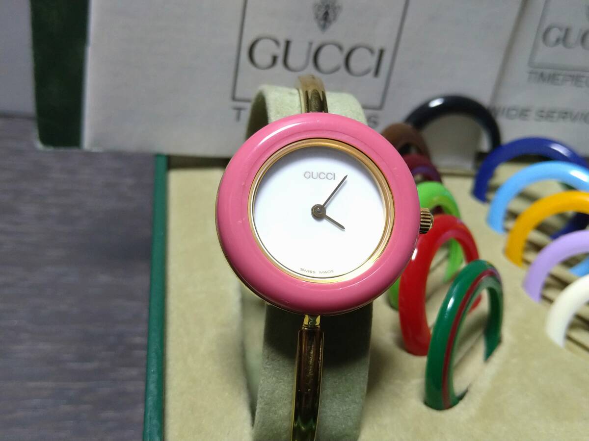 11/11電池交換済みで、現在不具合無く稼動中のグッチチェンジベゼル 11/12.2 レディースウォッチです。