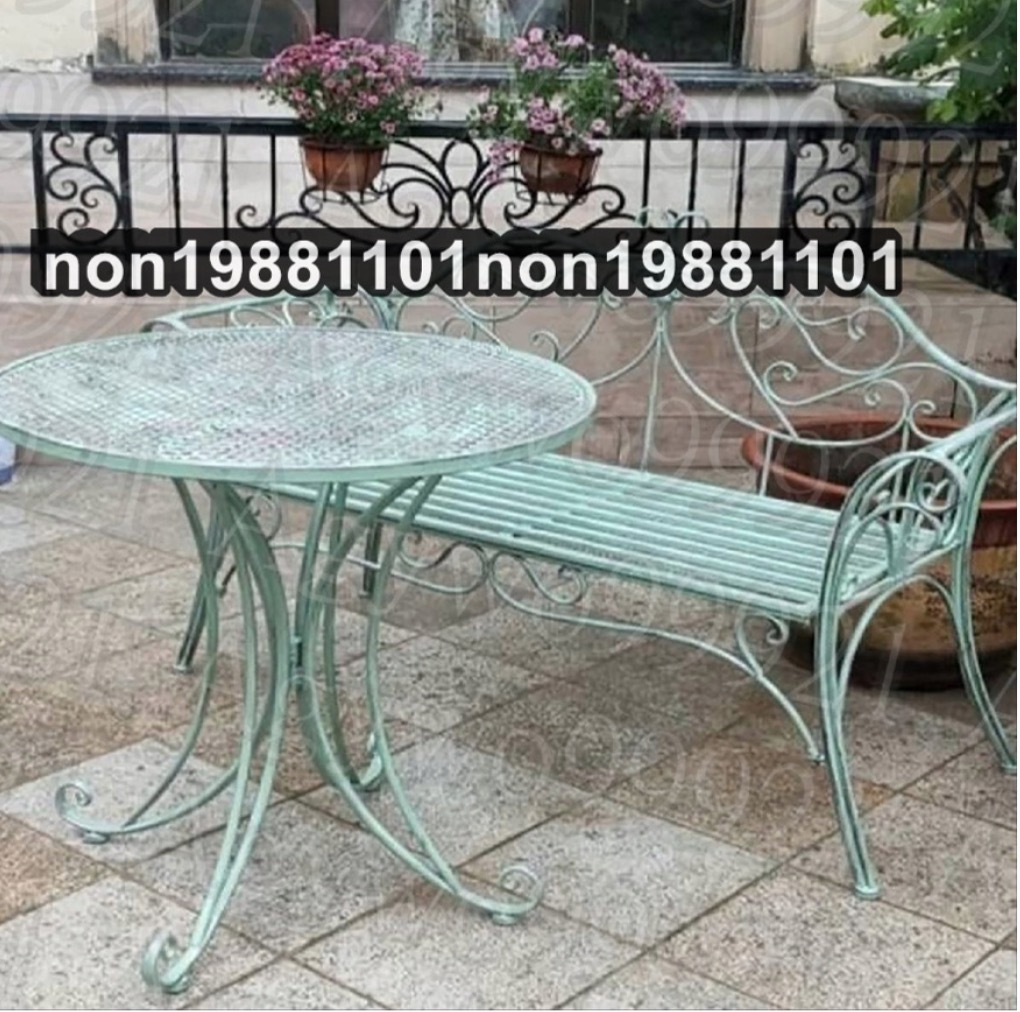 ガーデンベンチ レトロなテラステーブル 椅子ンティークガーデンベンチメタルパークベンチ 鉄耐候性/簡単な組み立て 133×90×49cm