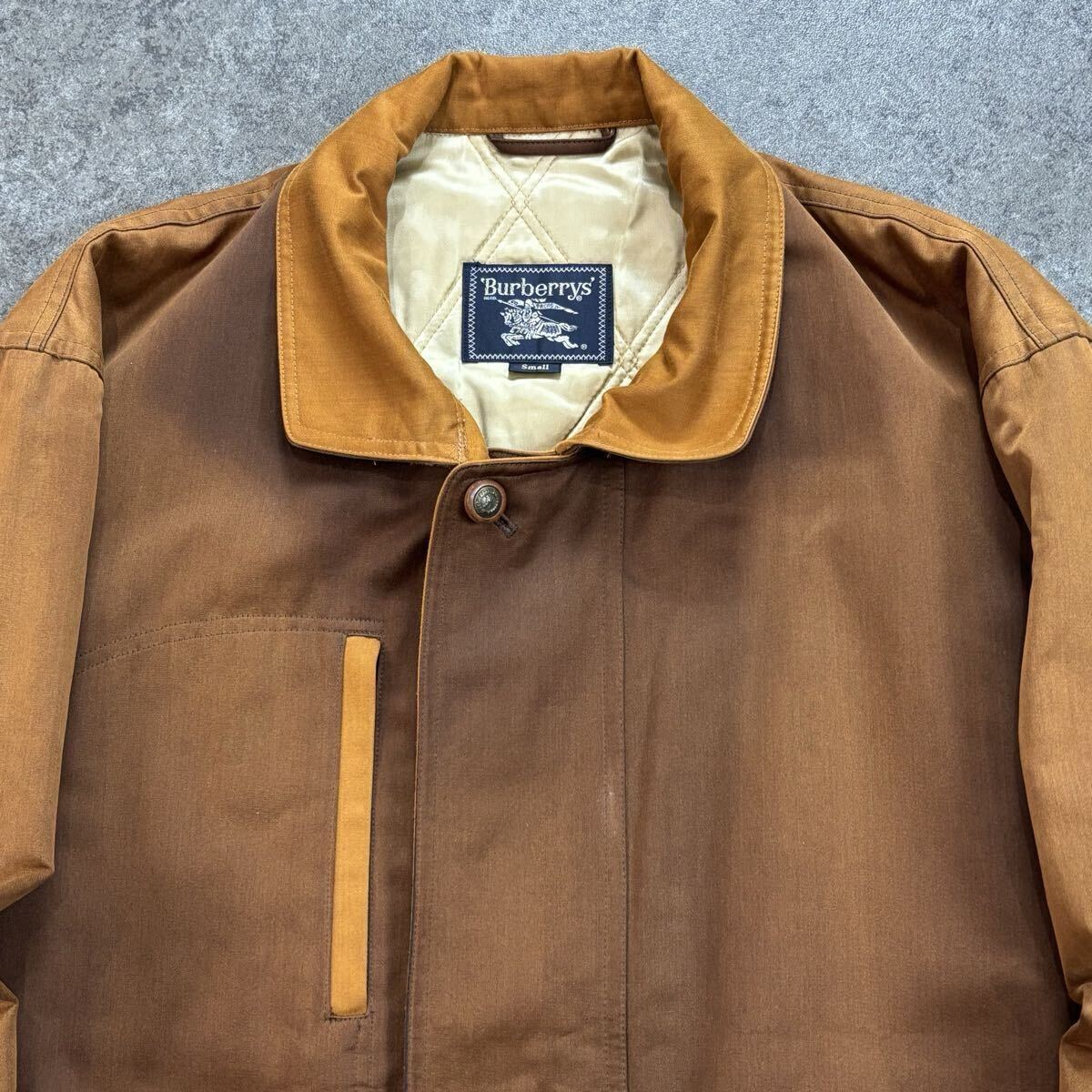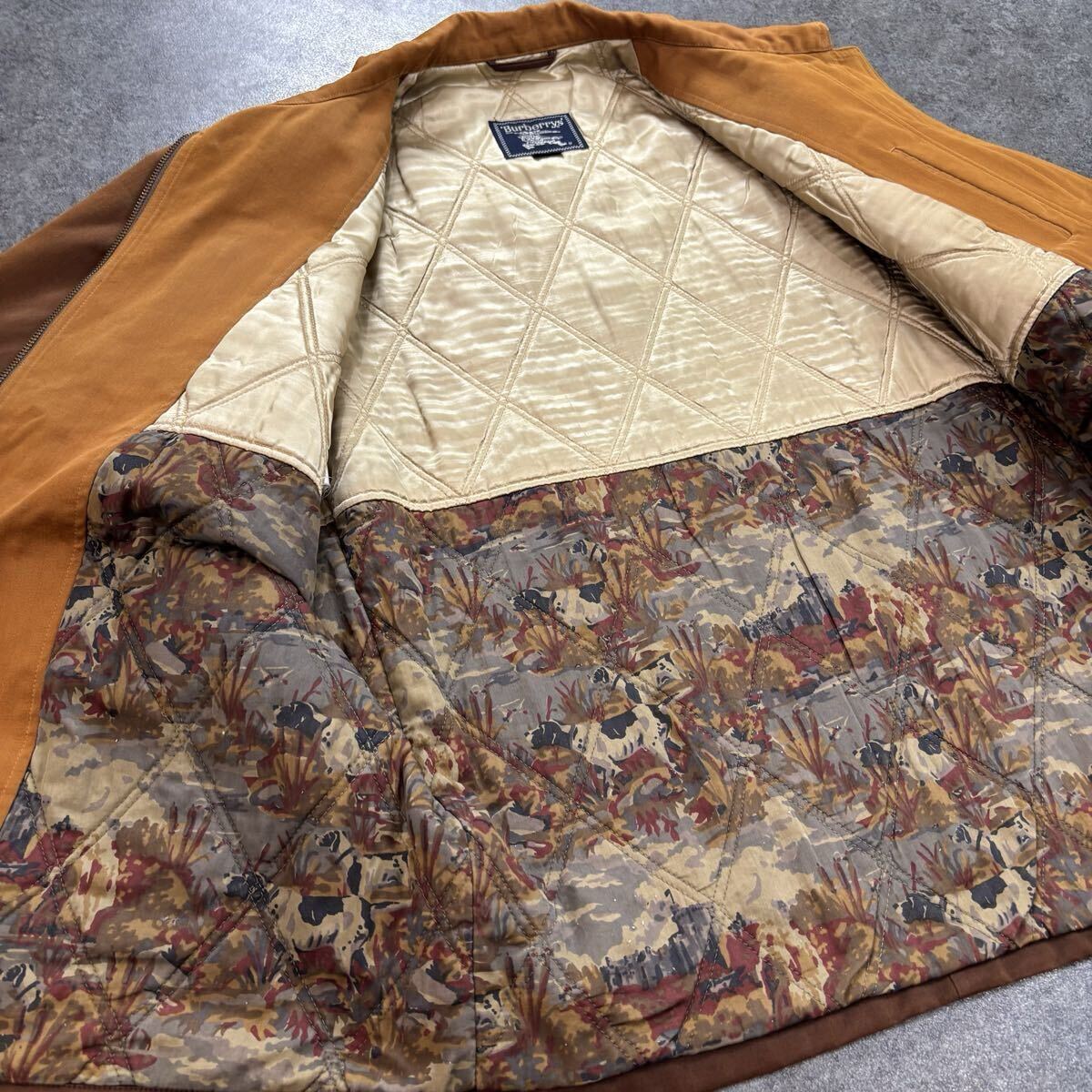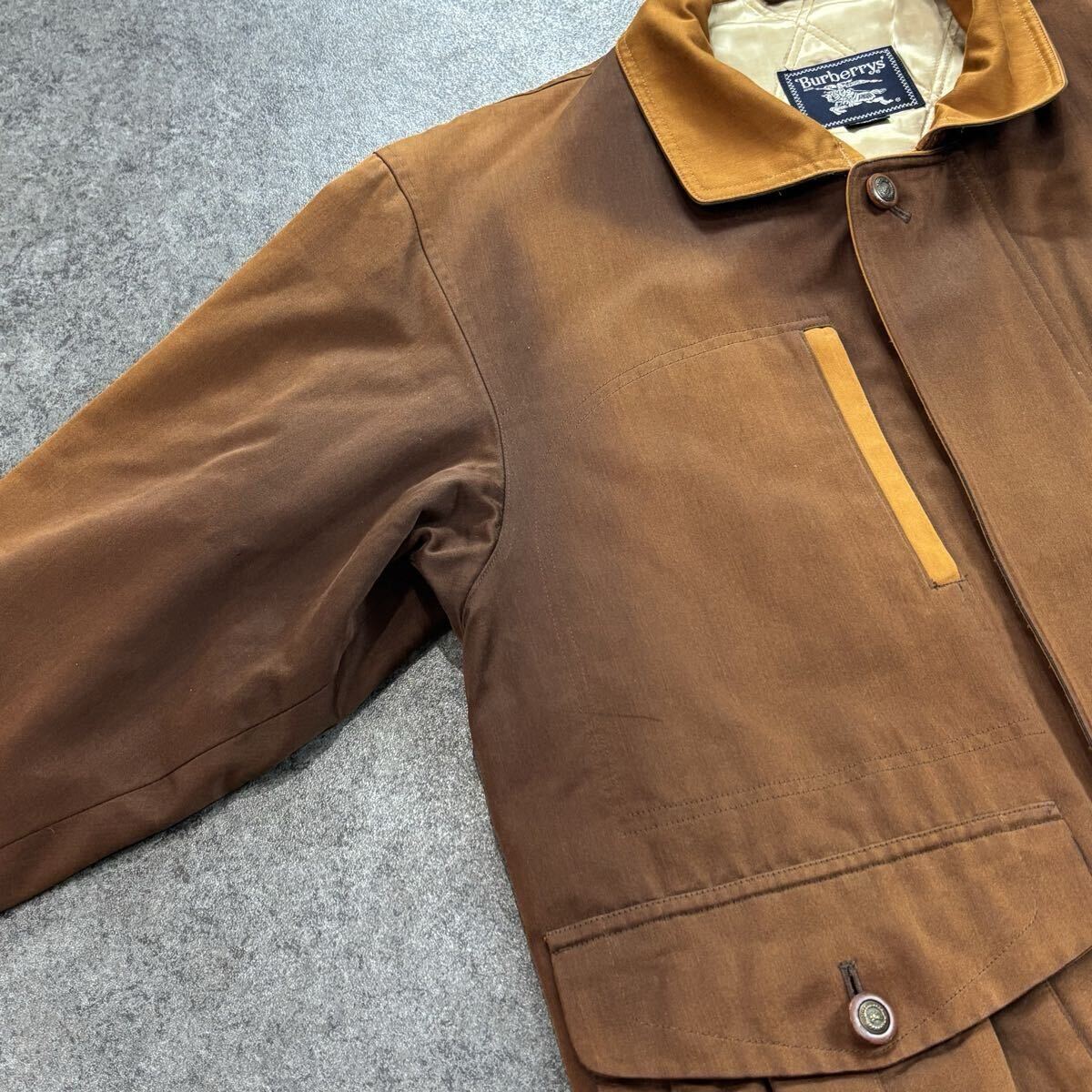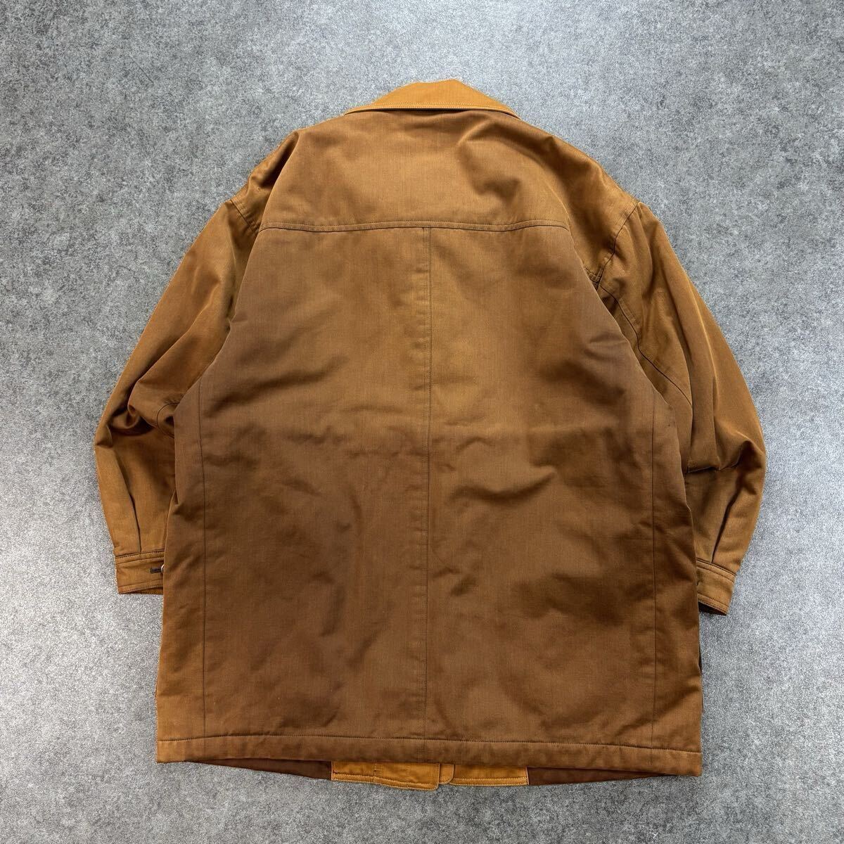 →全体的に多少の色褪せがあります。襟内側部分に多少の生地の使用感がありますが、着用の際は隠れるため問題ありません。正面身頃付近には多少のシミ汚れがあります(写真参照)。