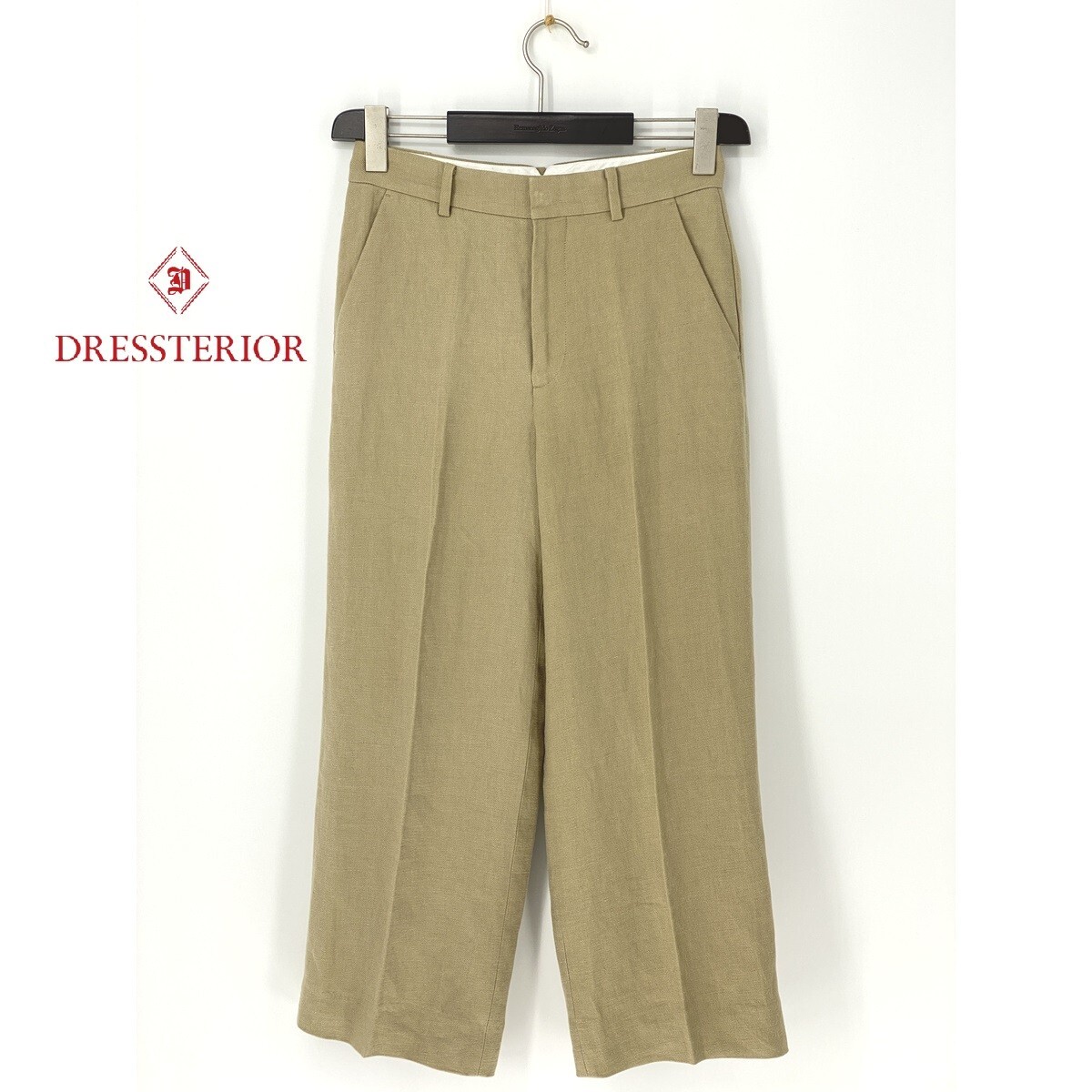 A9230/極美品 春夏 DRESSTERIOR ドレステリア リネン100% テーパード ノータック ワイドパンツ スラックス 36 S程 ベージュ レディース