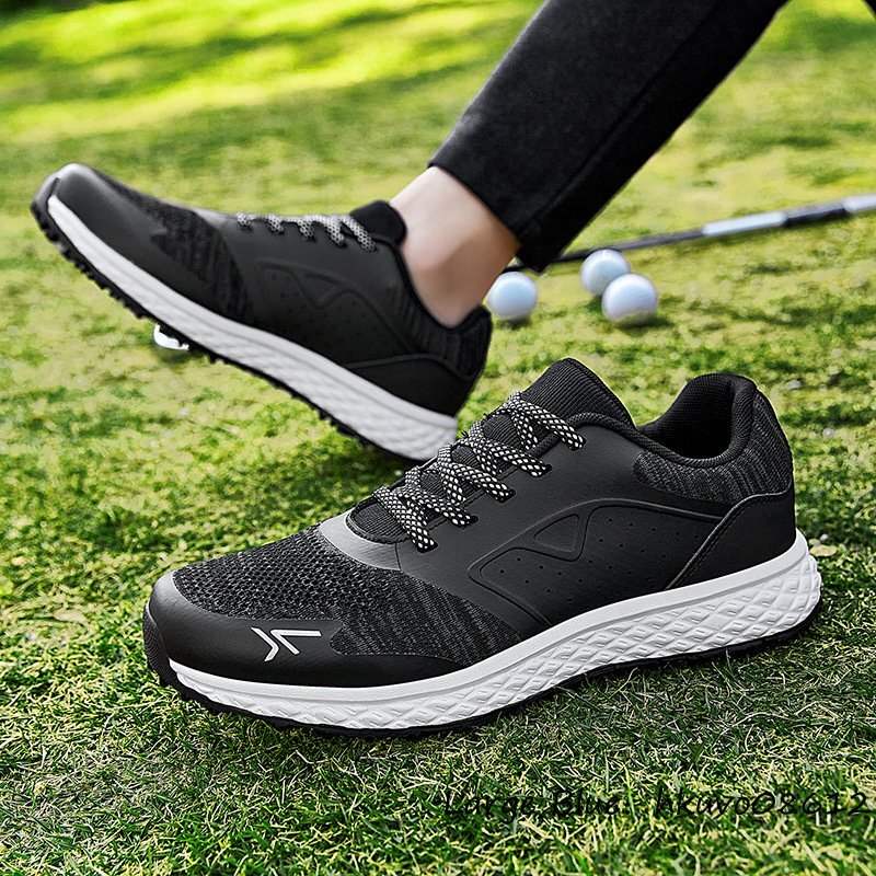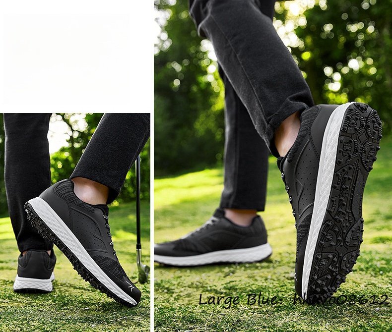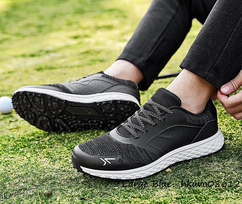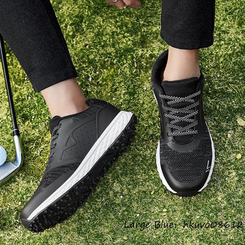 新品◆ゴルフシューズ メンズ 高級 スニーカー 幅広 フィット感 スポーツシューズ 運動靴 スパイクレス 軽量 撥水 弾力性 ブラック 24.5cm