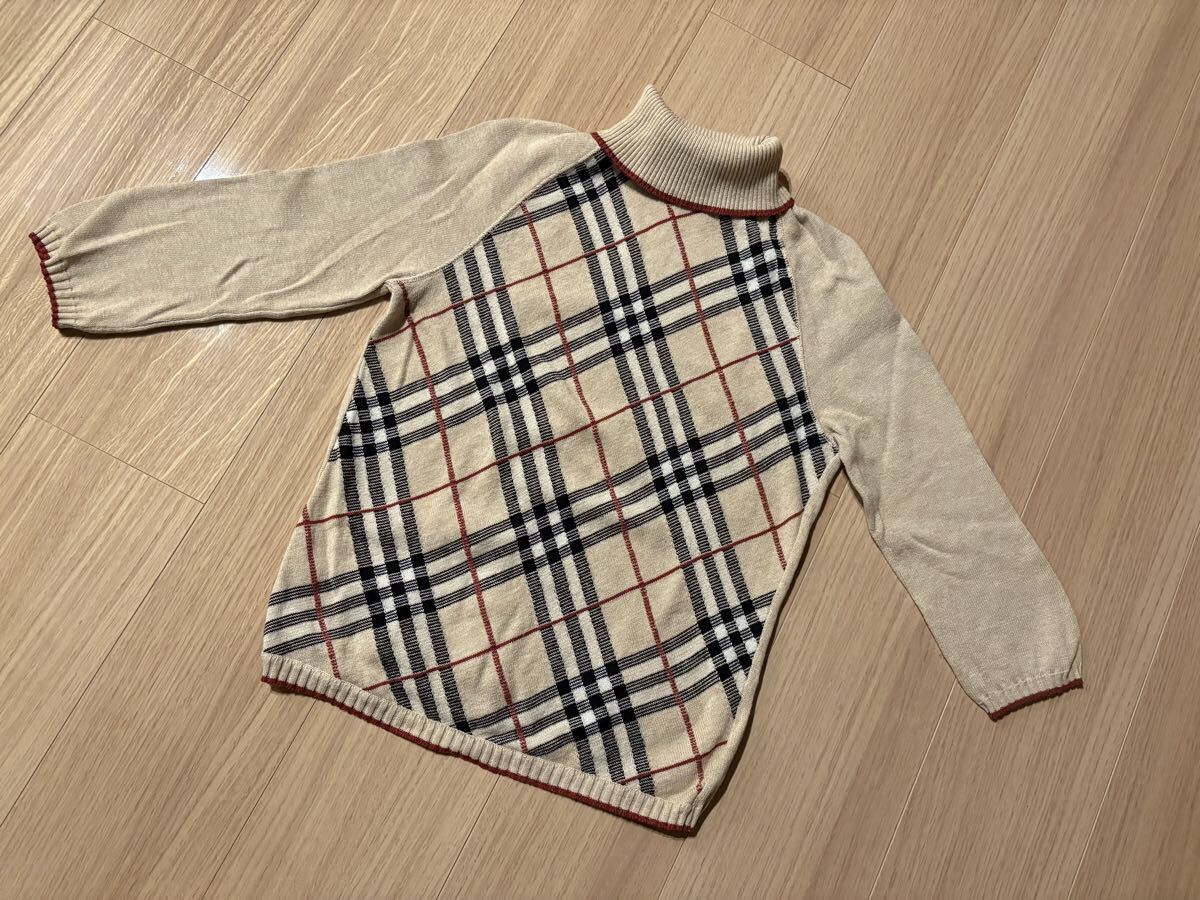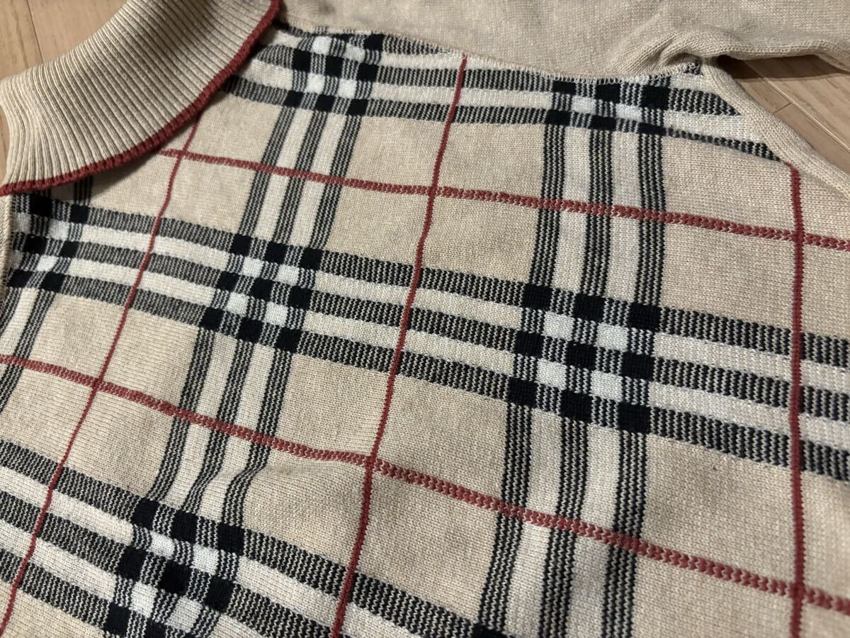 バーバリーブルーレーベルのベージュの七分袖チェックニットです。