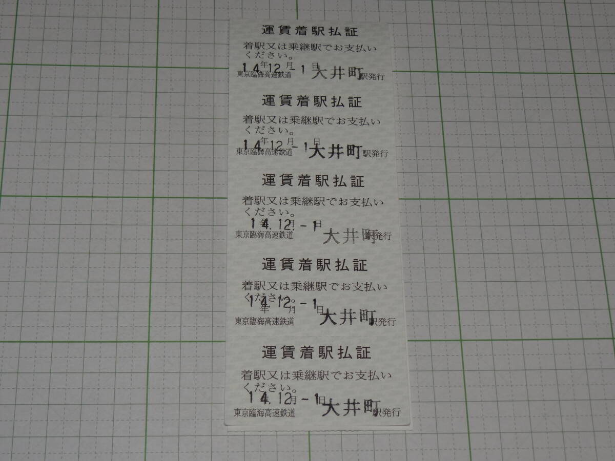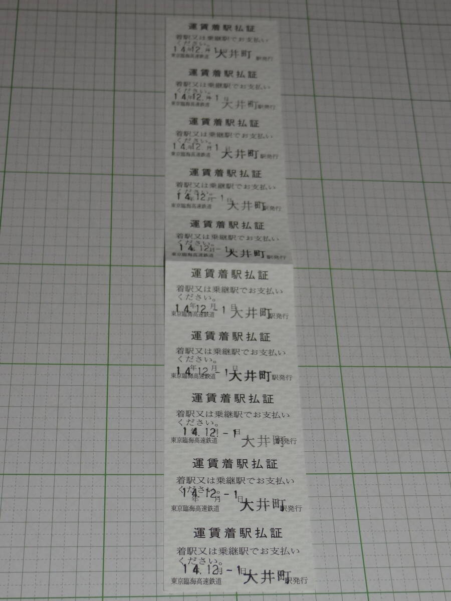 【東京臨海高速鉄道】大井町駅発行 開業初日H14.12.1 運賃着駅払証 10枚綴り