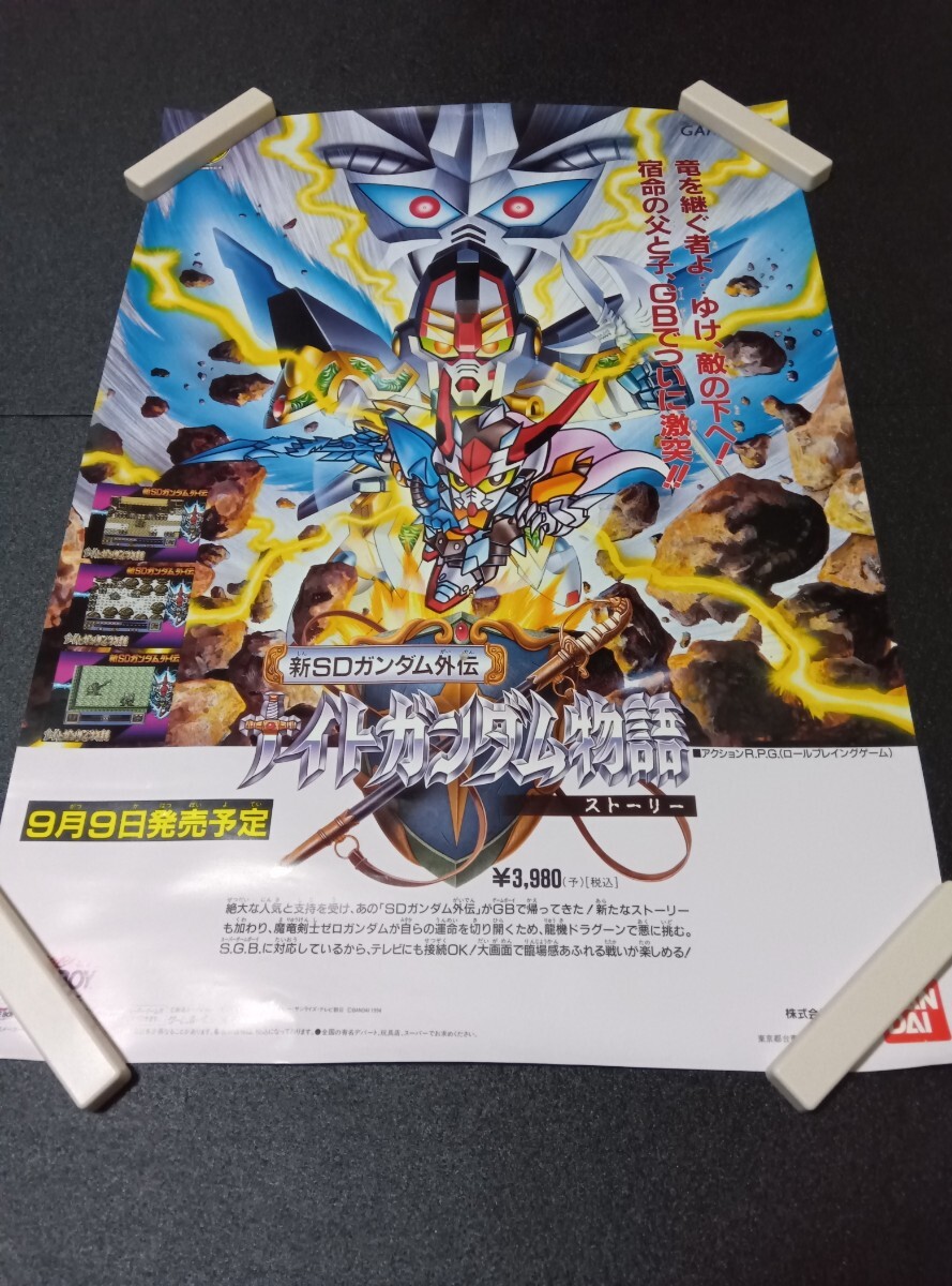 『任天堂 ゲームボーイ バンダイ 新SDガンダム外伝 ナイトガンダム物語 ポスター A2サイズ 1994年 告知販促用 正規品 Nintendo GAMEBOY BANDAI ナイトガンダムストーリー GUNDAM poster』