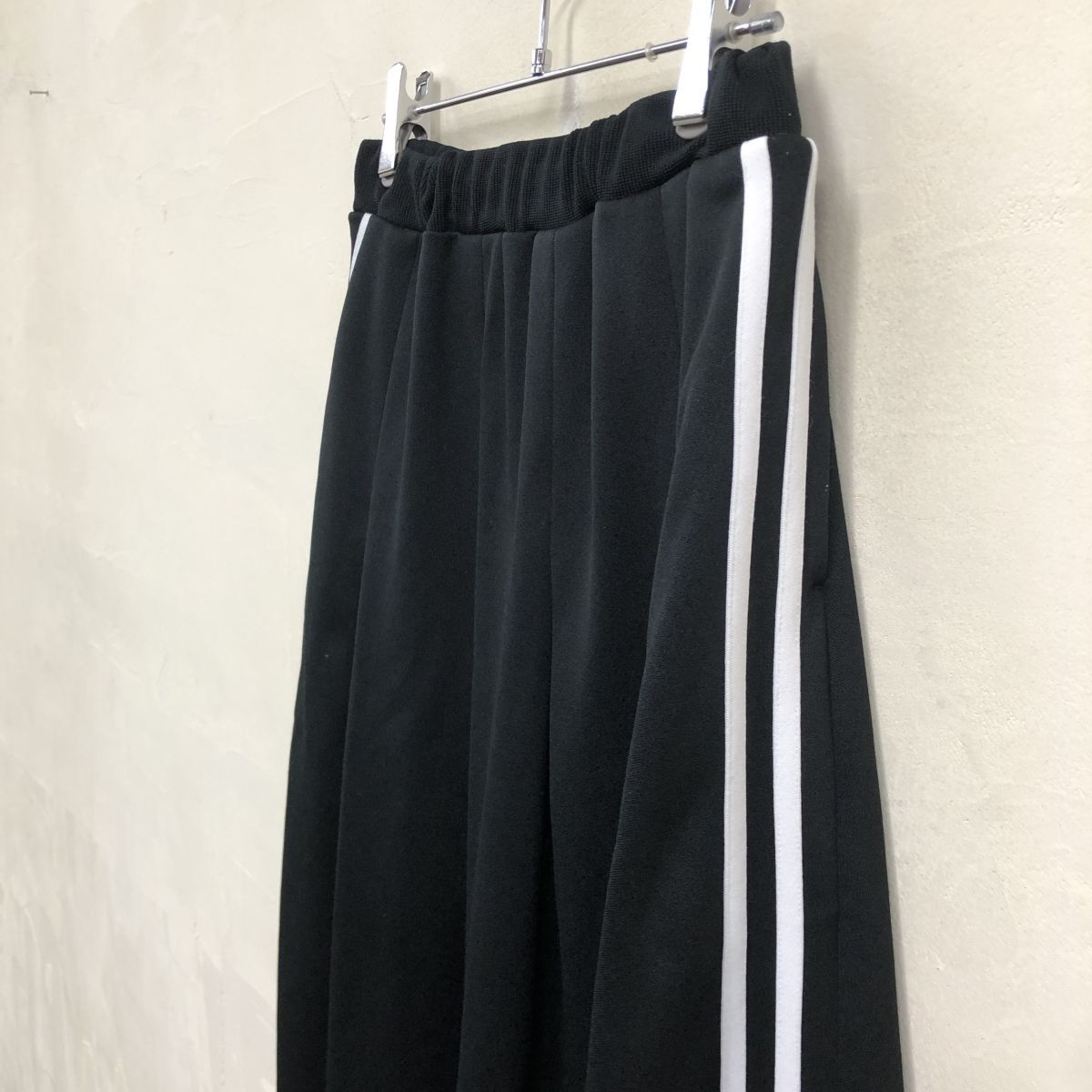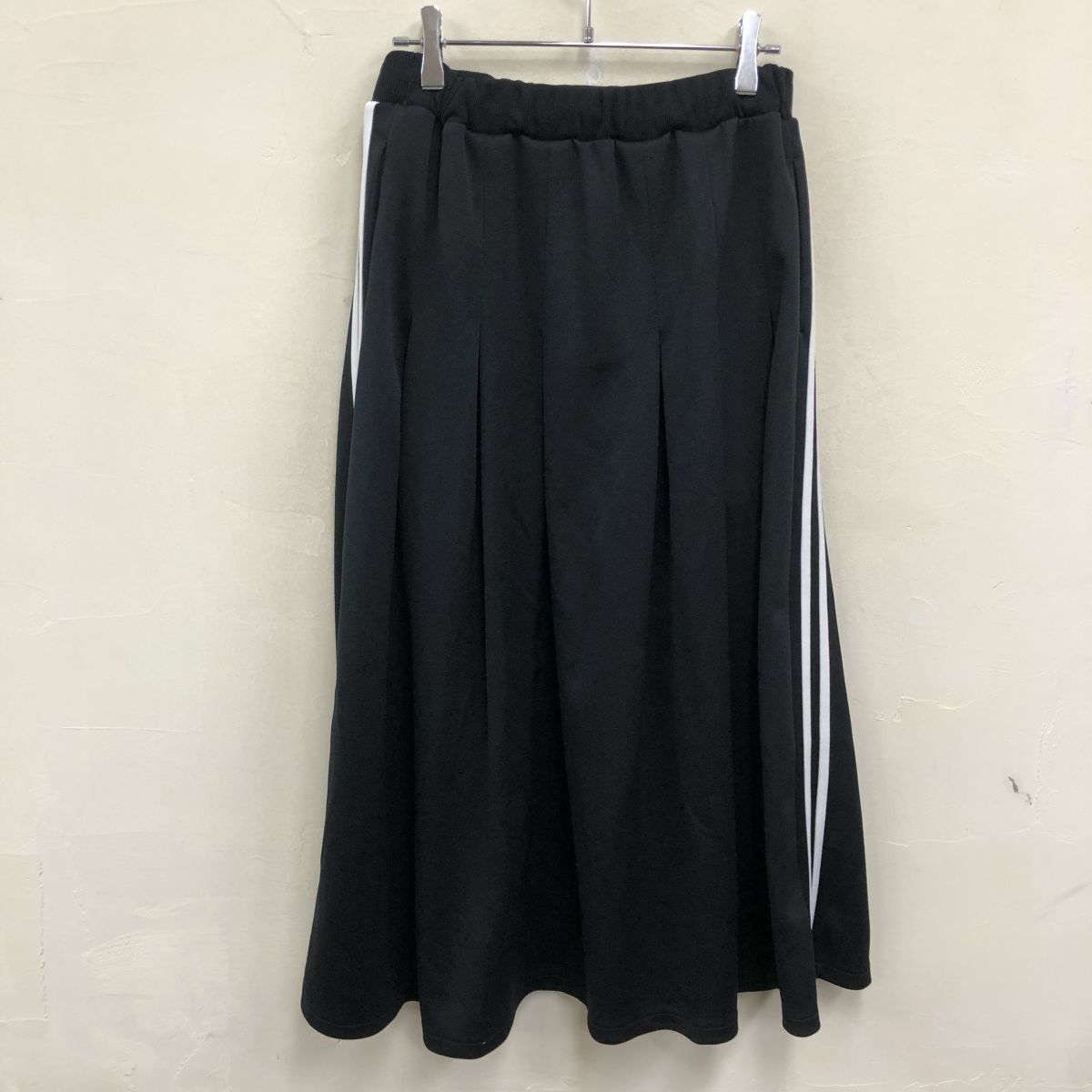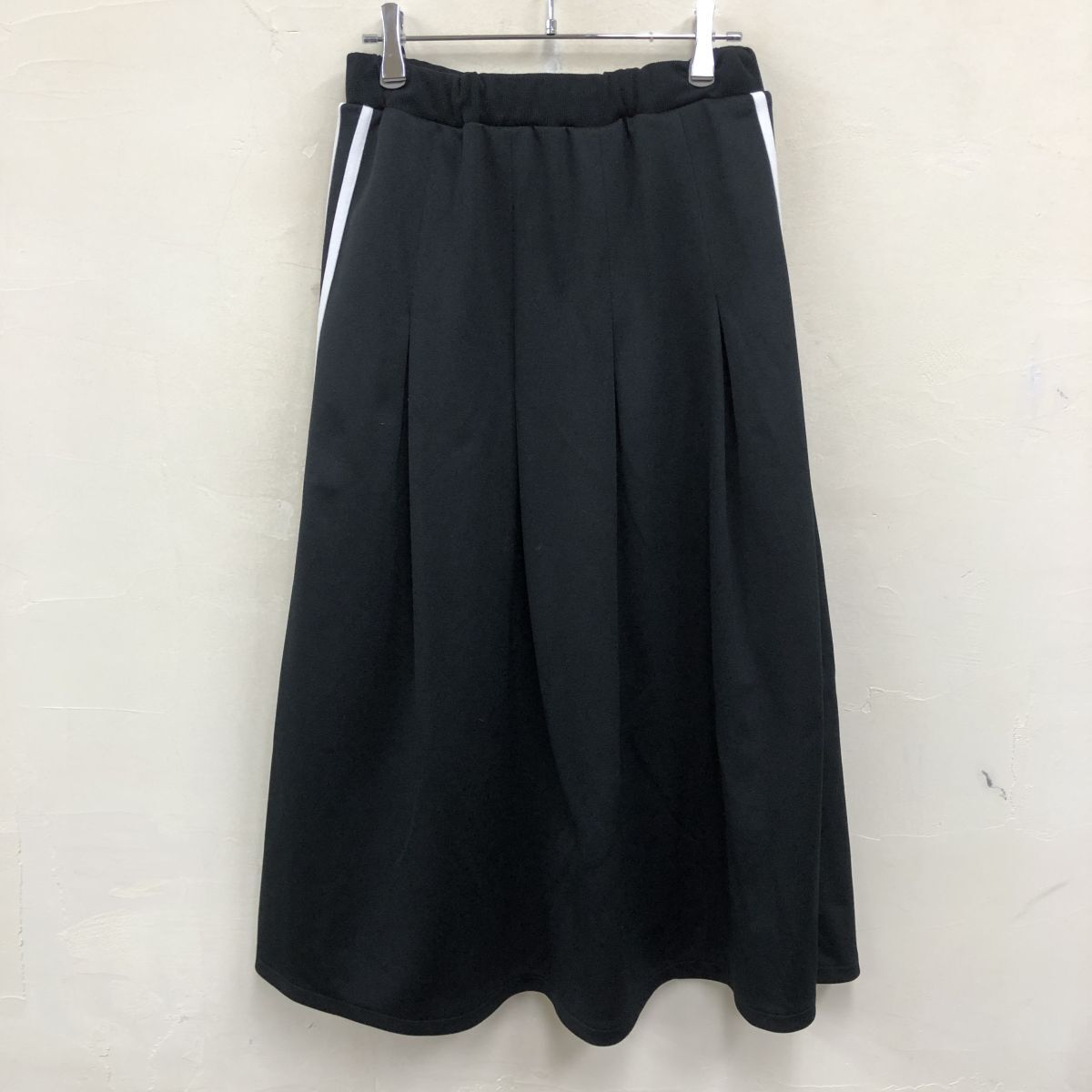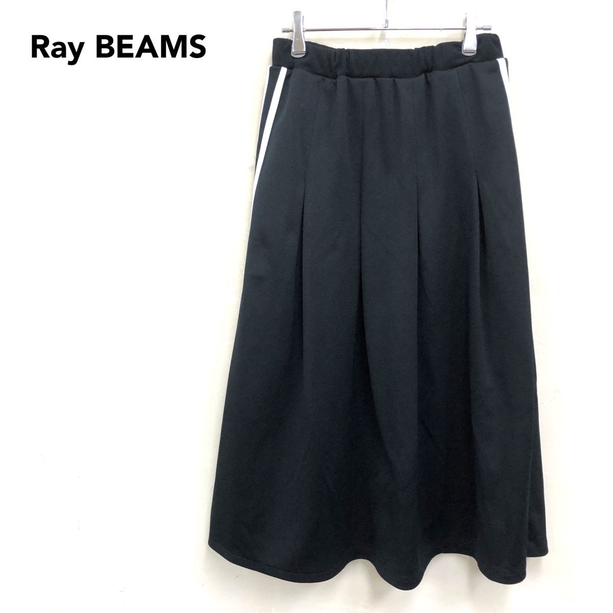 2N1633-W◆Ray BEAMS レイ ビームス ジャージスカート 二本線 裏地無し ゴムウエスト スポーティー カジュアル◆ブラック ポリエステル