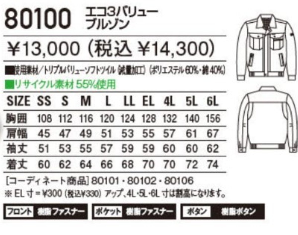 | ▼商品名 | [未開封品 サイズEL] 自重堂 Jichodo 作業服 エコ3バリュージャンパー 3L 80100 シルバー 秋冬 作業着 ワークウエア ブルゾン 制電 防汚 |