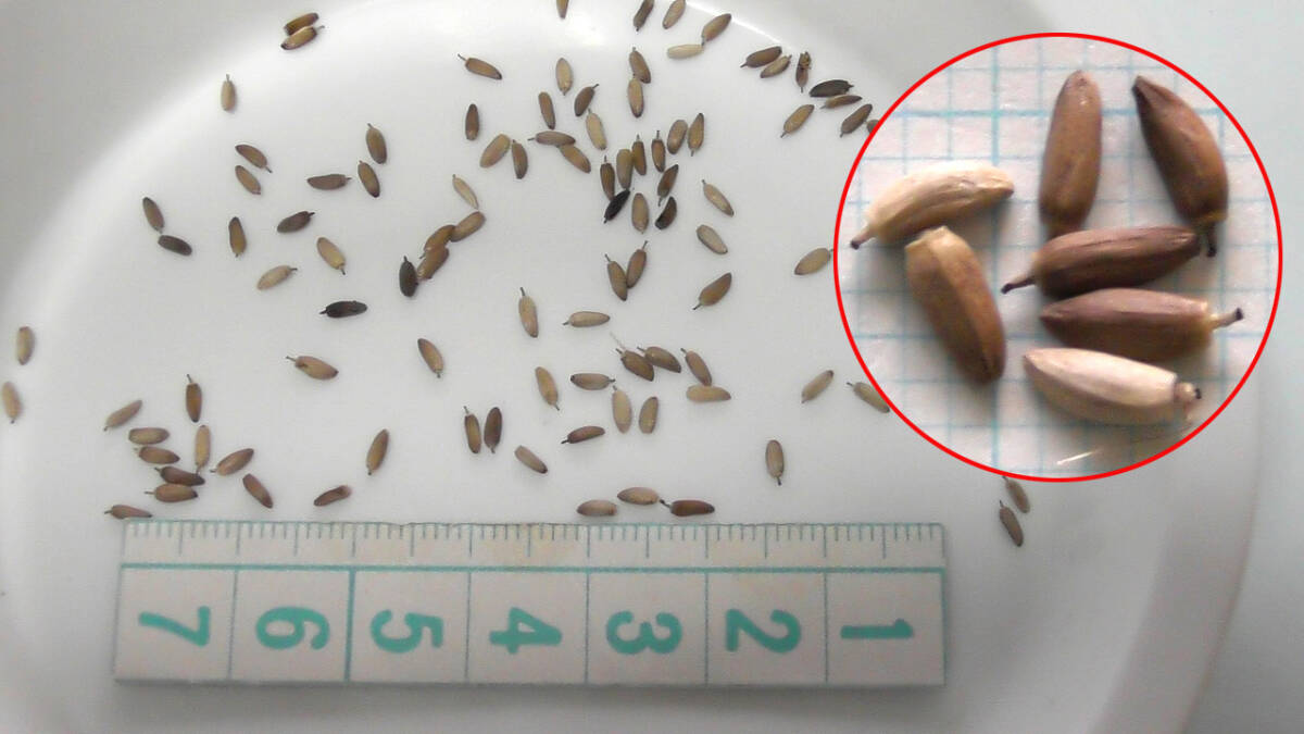 本で冠毛を取り除いた種15粒をつぶれないように紙箱で保護して第四種郵便で送ります。山野草の