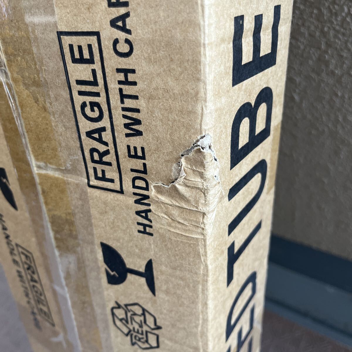 箱に直接伝票を貼り発送します。弱い部分はテープで補強します