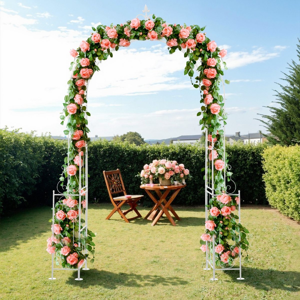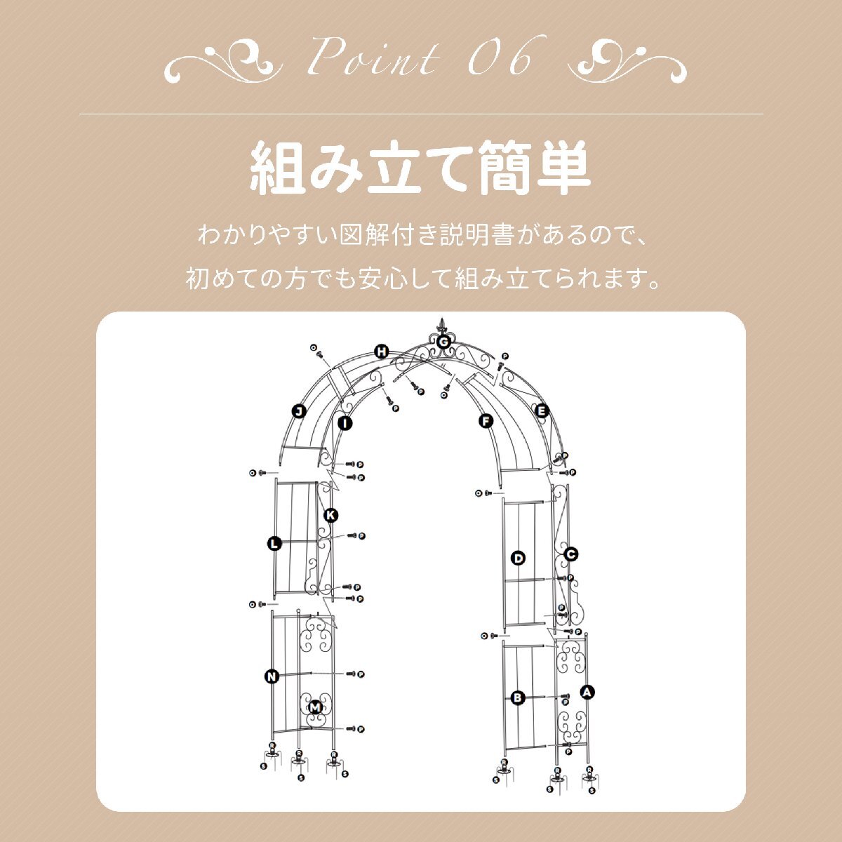 • 【上品な空間を作る、魅力的なガーデンアーチ】美しい曲線と繊細な装飾が、まるで夢のような特別な空間を演出します。庭や玄関先に置くだけで、空間が一気に華やかになります。ガーデンウェディングの入り口に。フェアリーライトを飾ってロマンチックに。ガーデンの飾りつけに。記念写真の背景としても大活躍。