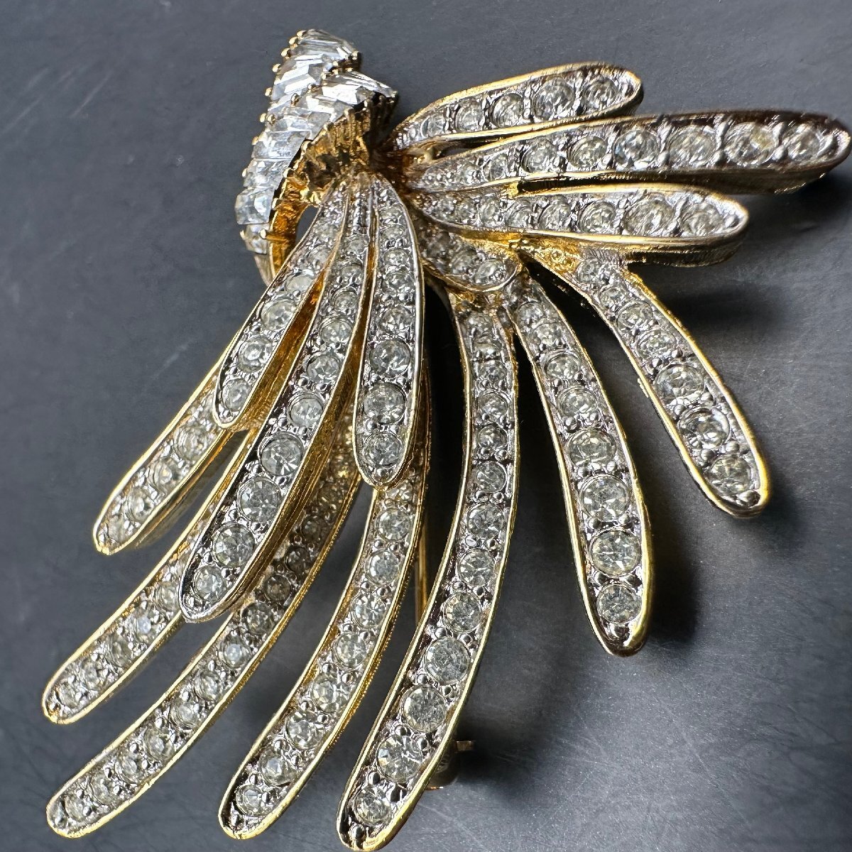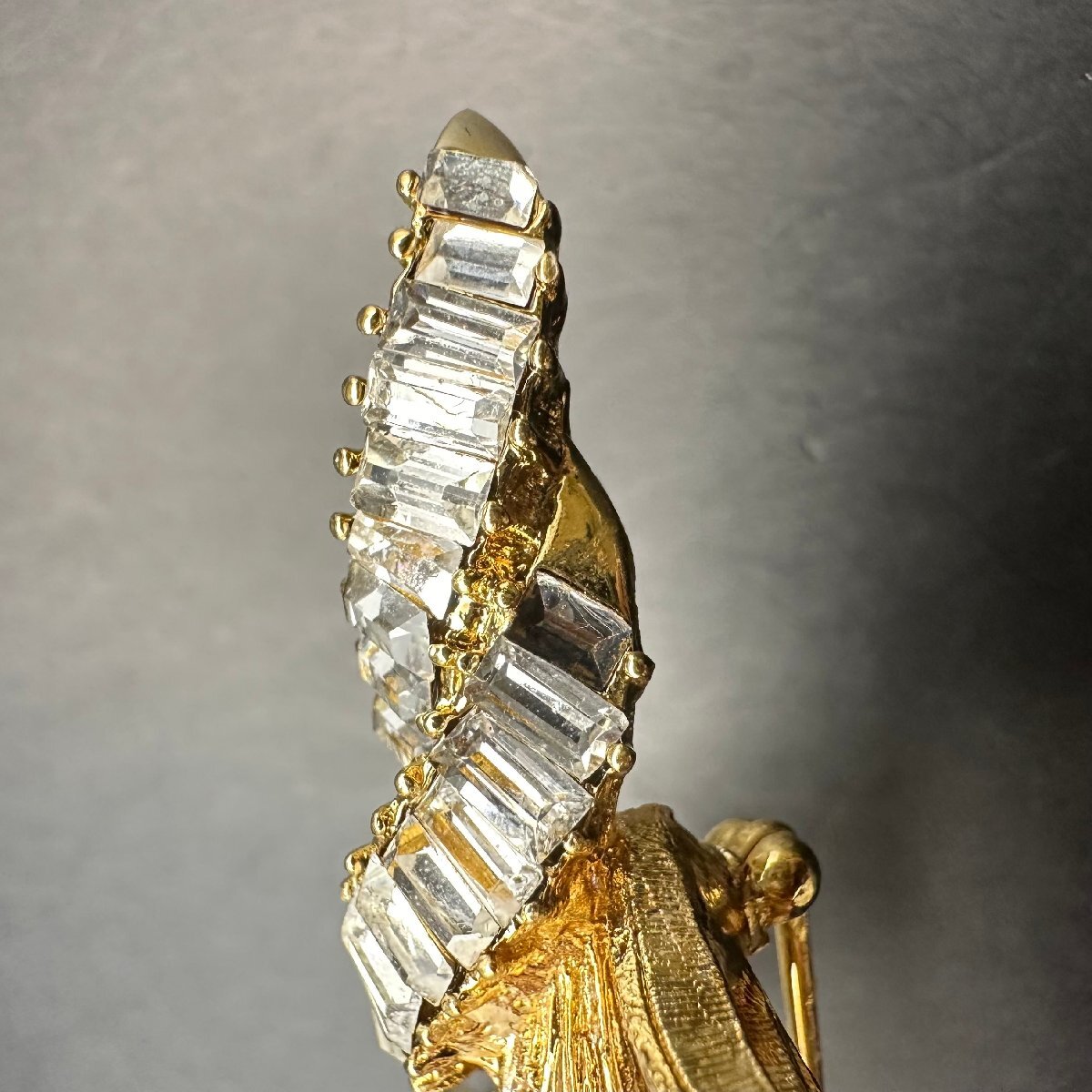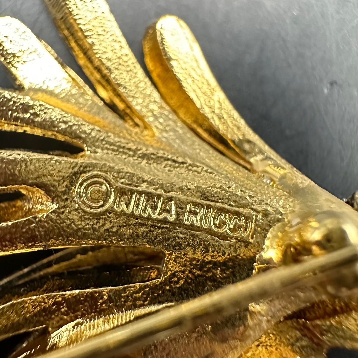 q633 ヴィンテージ NINA RICCI ニナリッチ ブローチ コサージュ アクセサリー ゴールドカラー ストーン ビジュー