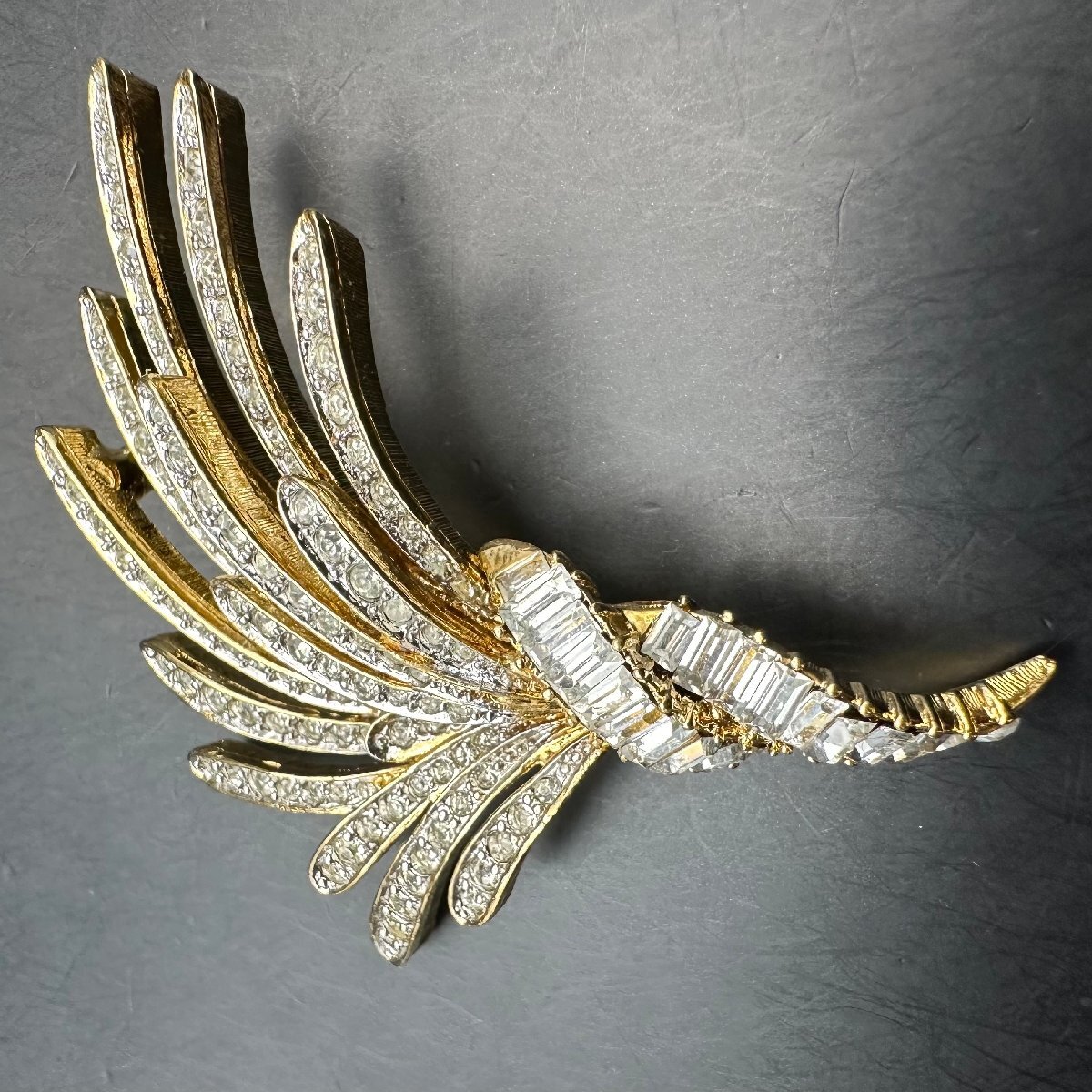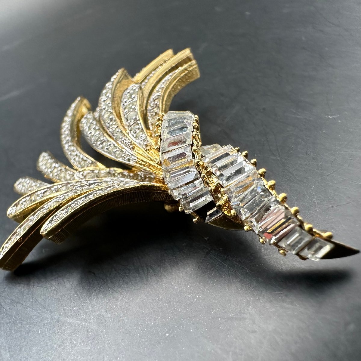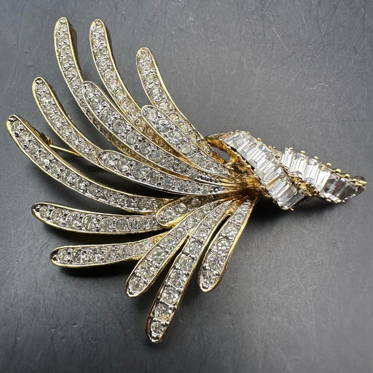 q633 ヴィンテージ NINA RICCI ニナリッチ ブローチ コサージュ アクセサリー ゴールドカラー ストーン ビジュー