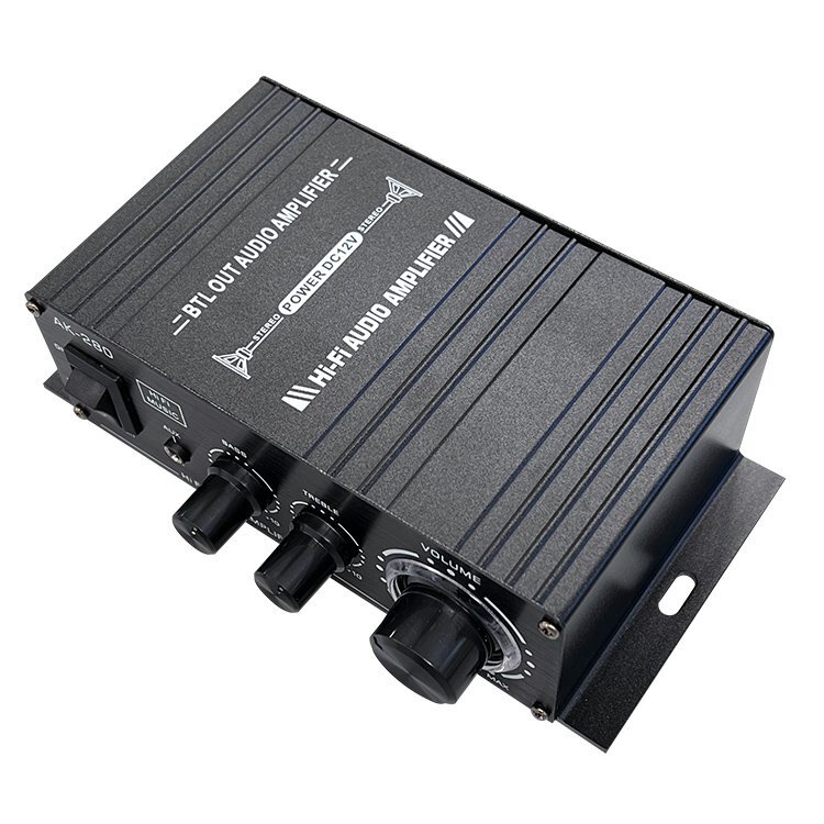 ◆コンパクトオーディオアンプ 40W+40W 高音/低音調整 AUX/RCA入力 小型2chパワーアンプ アルミボディ Hi-Fiステレオアンプ DC12V/2A 音楽鑑賞用/車やバイクに LPAK280