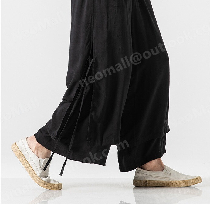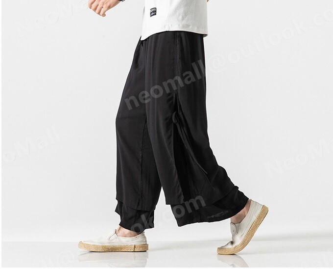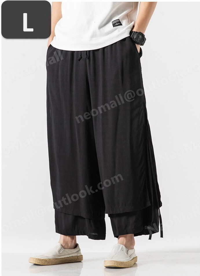 お買い得☆メンズ ワイドパンツ ブラック L カジュアル ロングパンツ スウェット 無地 ポケット付 オールシーズン【066】