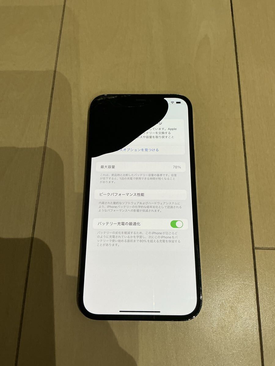 こちらは画像4~8の様に本体の外観には細かな使用小傷や背面ガラス割れがあり、外観はやや使用感を感じる状態だと思います。こちらは画像1~3、9の様に液晶不良、若干液晶のチラつきが出る時があります。それと、液晶が緑の画面になる時がありますが、充電したり操作していますと画像の様に表示されます。背面カメラの2.5×を起動しますと、画像9の様に影の様な物が出る時があります。それ以外の機能自体は問題は無いかと思います。残債はありません。