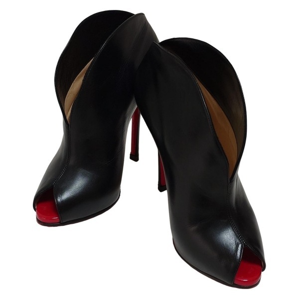 クリスチャンルブタン CHRISTIAN LOUBOUTIN ブーティ 37 - レザー 黒 レディース オープントゥ/アウトソール張替済 靴