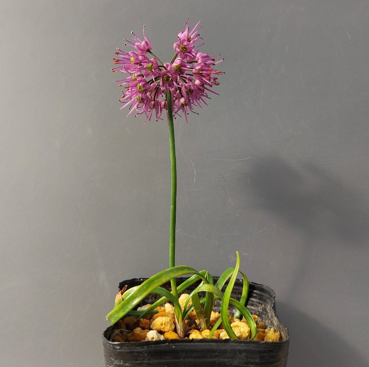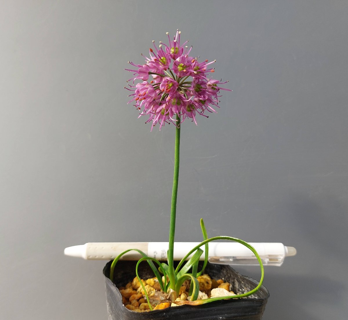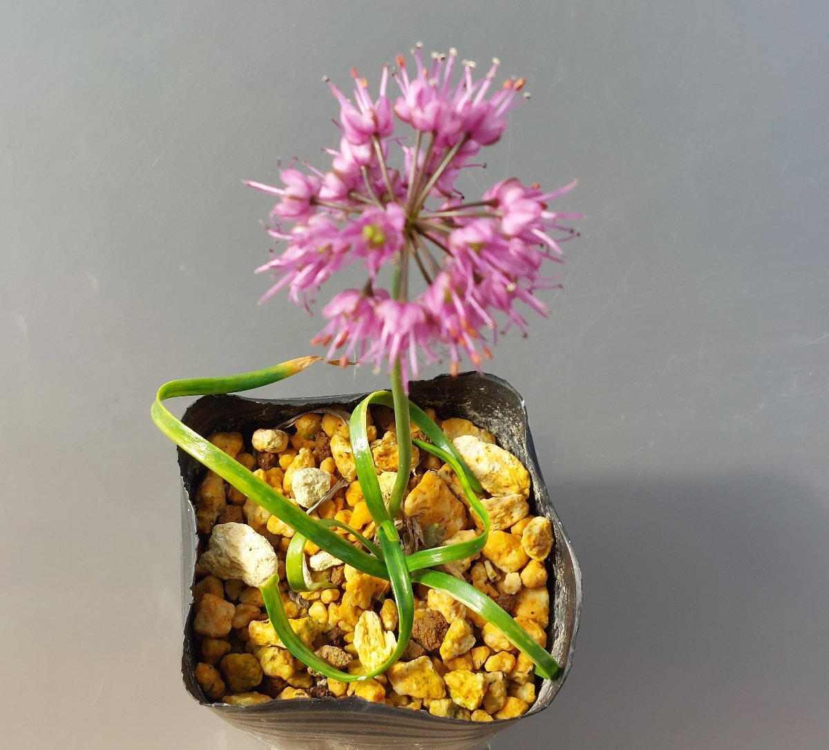 ネギ属の野生種のタマムラサキの巻葉の珍品です。対馬で見つかった個体です。