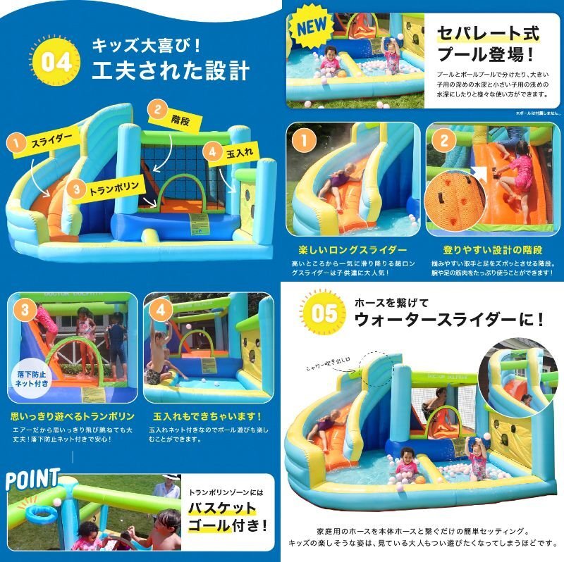 HO!!PS エアー遊具 HOLIDAY トランポリン ビニールプール 大型プール すべり台 大型遊具 エア遊具 ウォータースライダー |