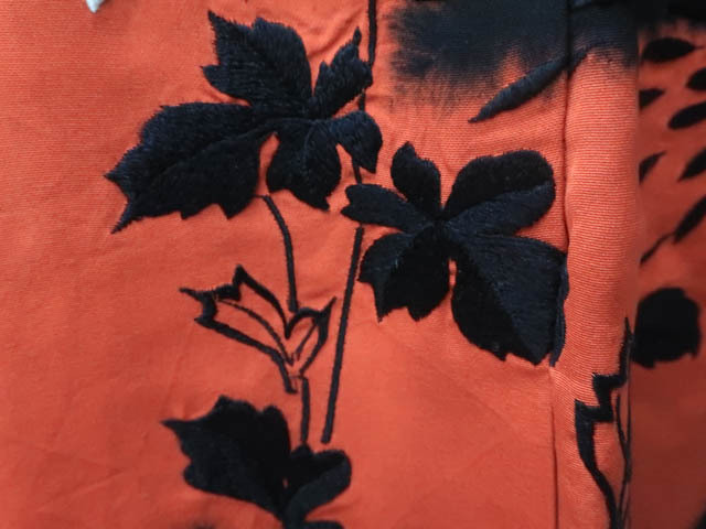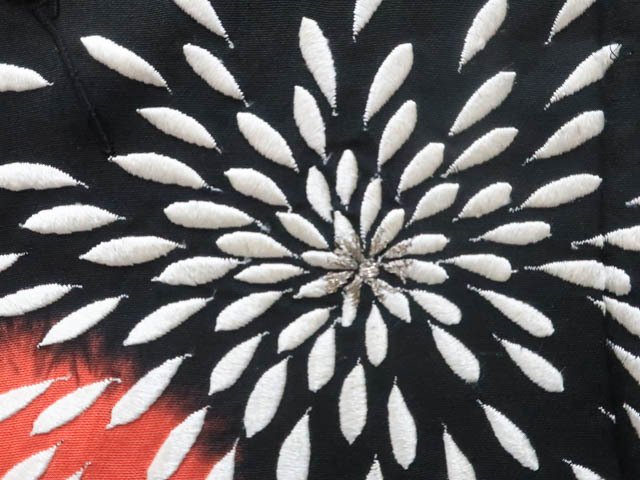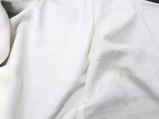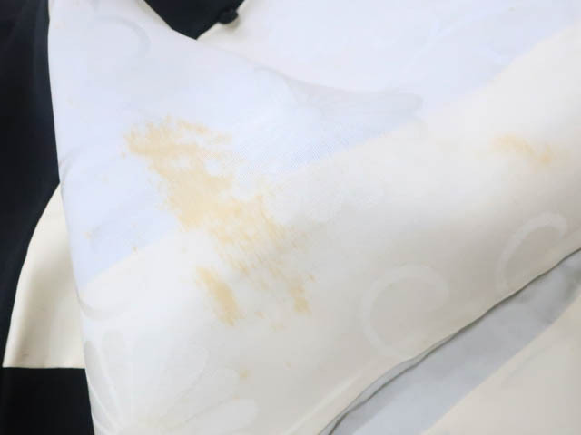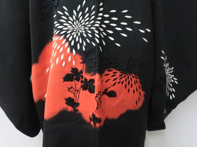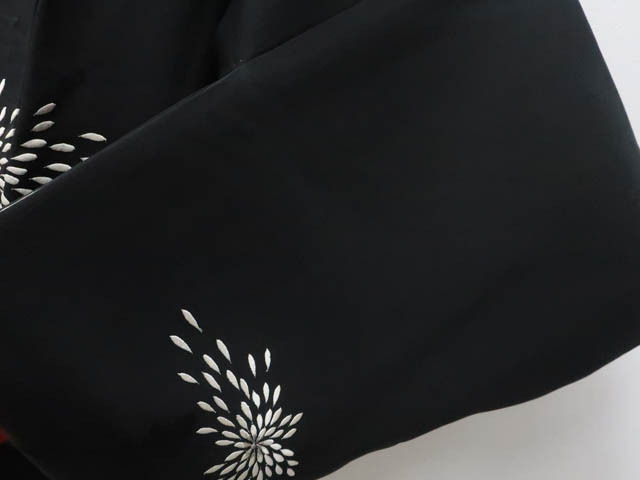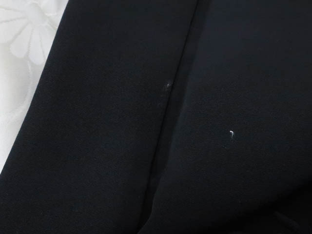 リサイクル商品のため、左襟裏、袖中、羽裏にしみ汚れがございますが着用可能なお品です。 地色は 黒です。 1枚目の画像が近いお色かと思われます。 素材は正絹です。 |