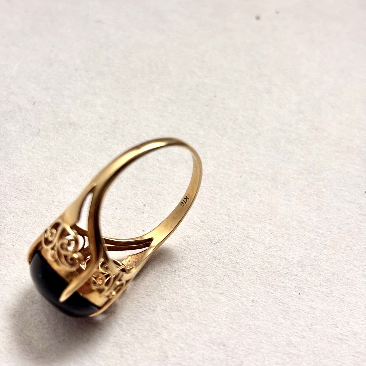 黒石とのコントラストが美しく、とても雰囲気のあるリングです。