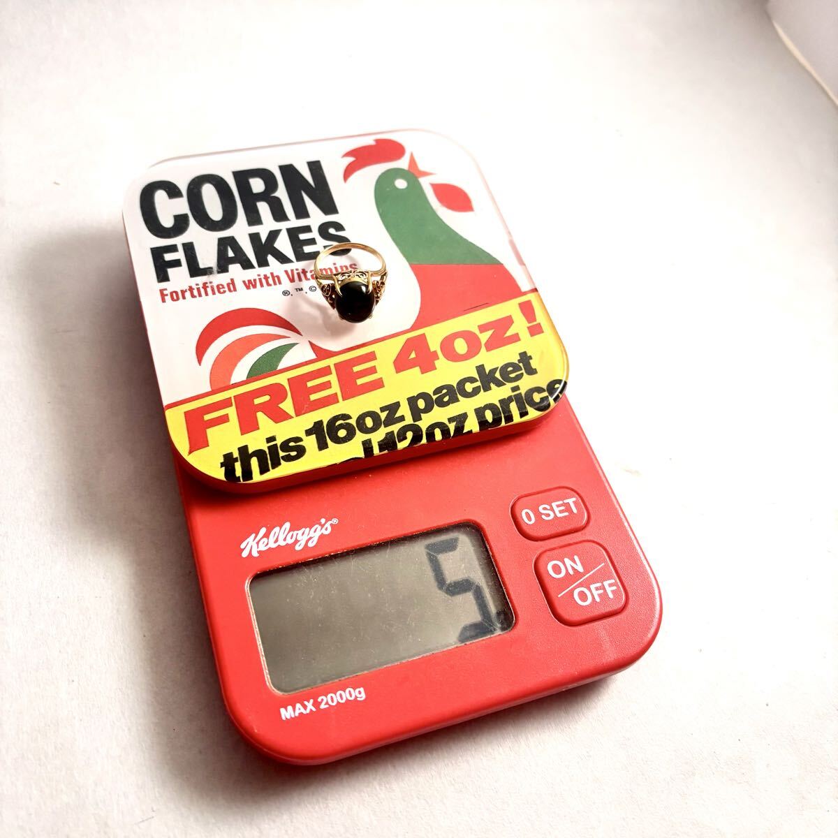 黒い石がセットされていますが、こちらは専門鑑定をしていないため