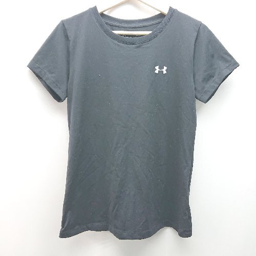 ◇ UNDER ARMOUR ラウンドネック 生地薄手 ロゴ 半袖 Tシャツ サイズLG ブラック レディース (メンズ) E