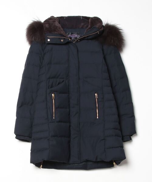 キーワード:ダウンコート ダウンジャケット レディース ジップ リアルファー ロング丈 無地 秋 冬