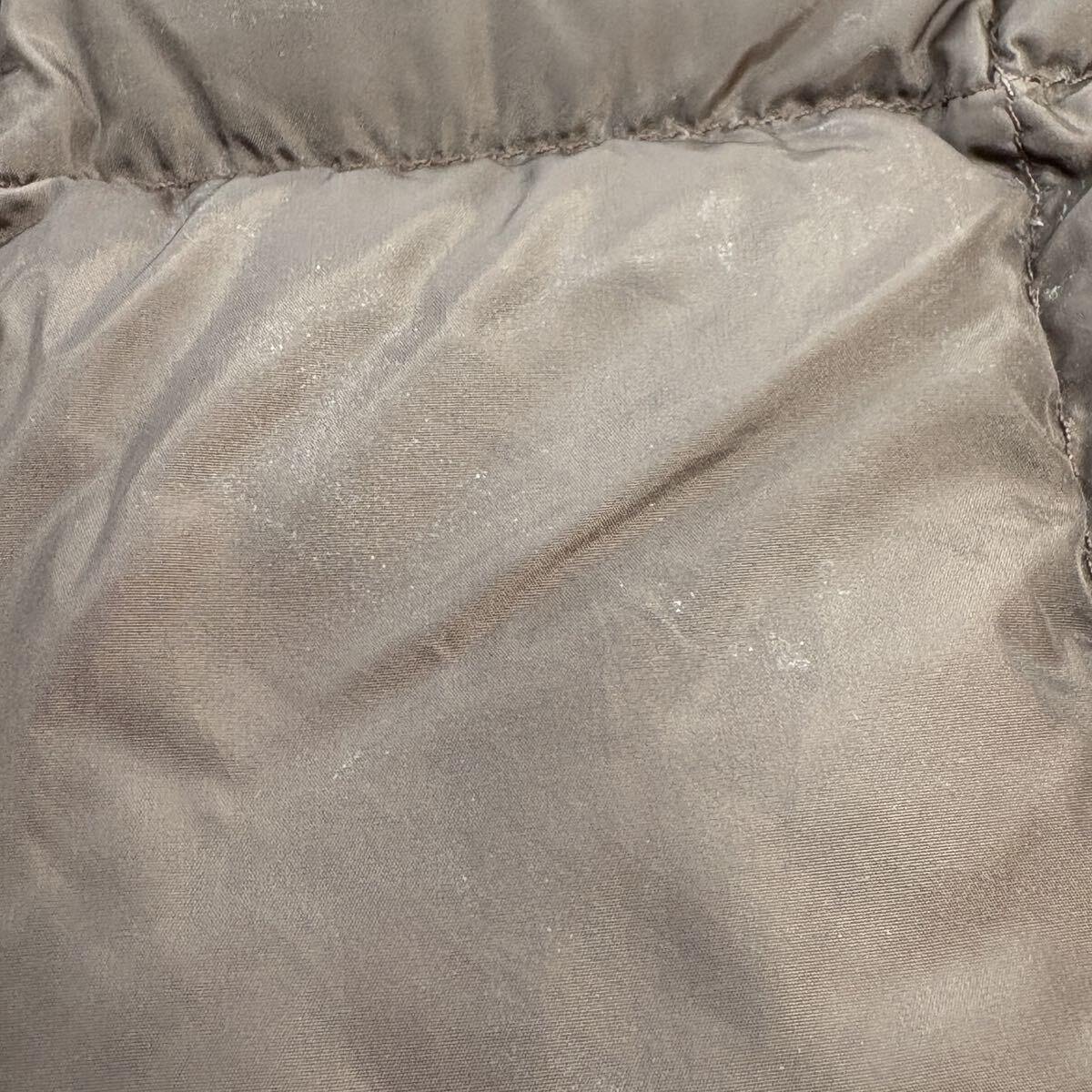 全体的に薄い汚れ、袖に赤い汚れ・数カ所に羽が出ている箇所あり。