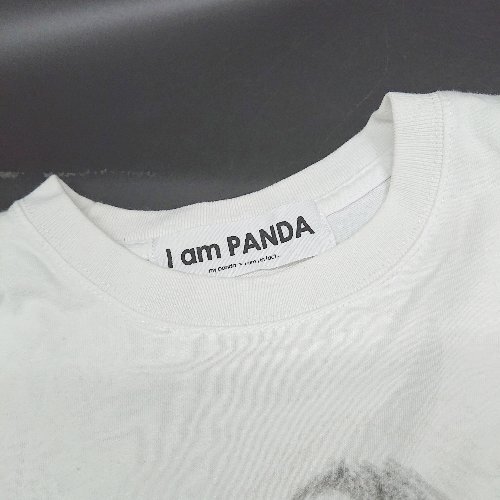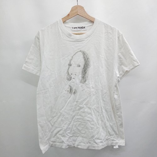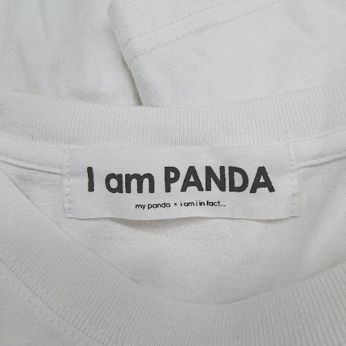 ◇ ⊂ I am PANDA アイアムパンダ 前面にイラスト 半袖 丸首イラストTシャツ サイズM ホワイト系 メンズ レディース E