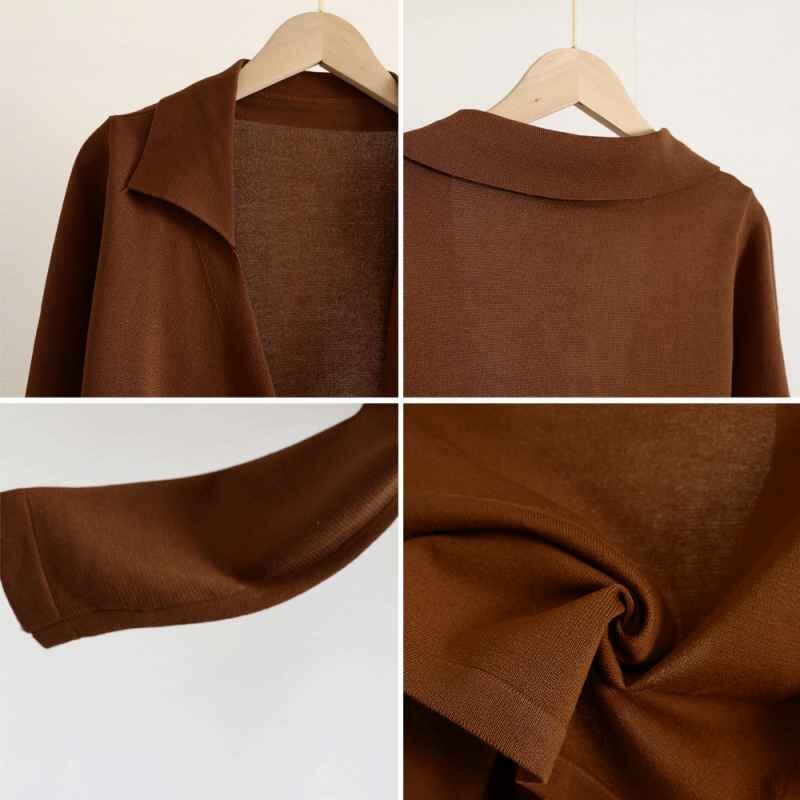 Vネックで胸元の縦ラインが強調されてシャープな印象を与えてくれて、カジュアルな雰囲気を抑えてすっきりとしたきれいめな仕上がりに◎