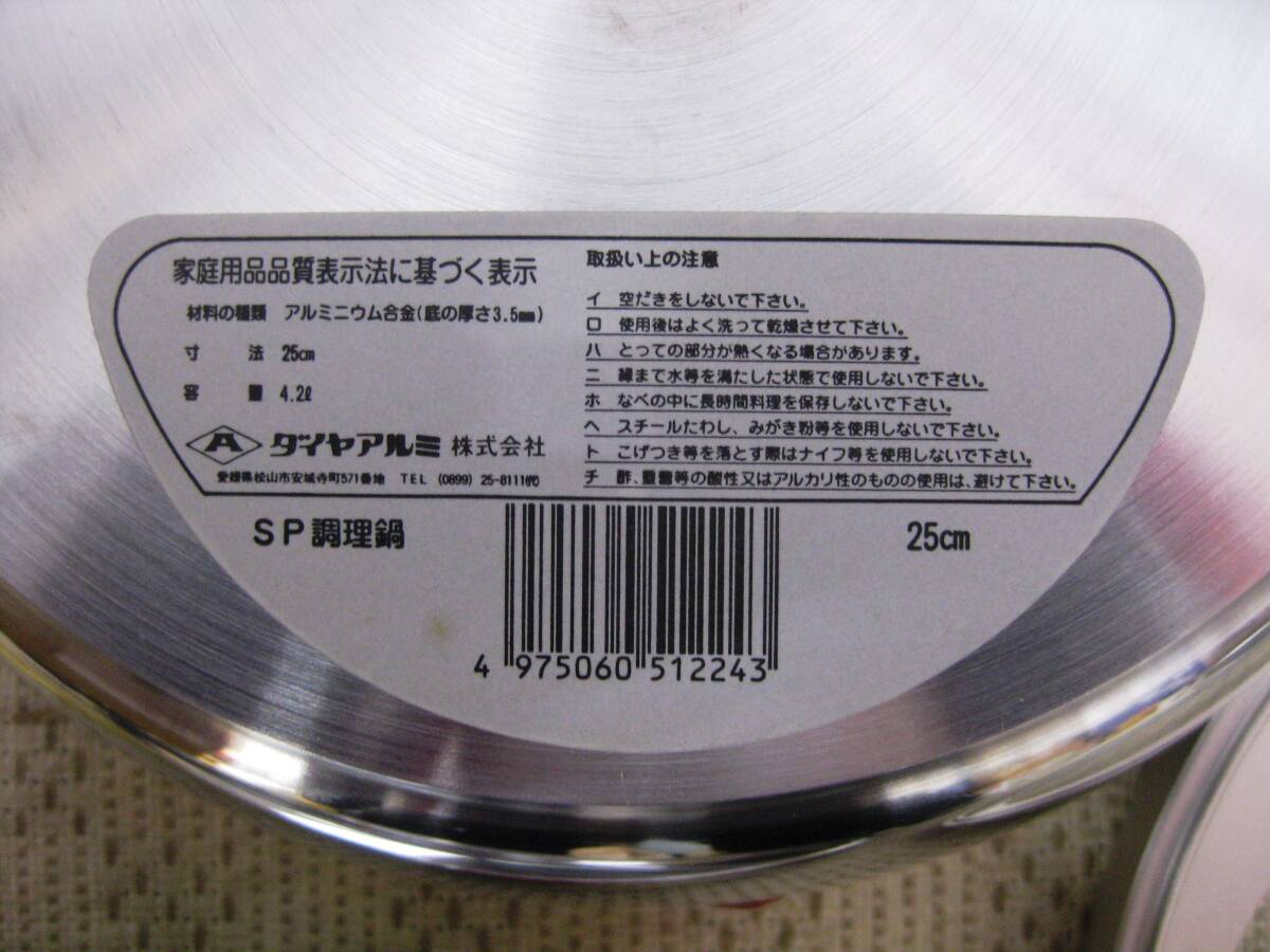 | アルミキャスト 厚手高級万能調理鍋 北陸アルミニウム製 アルミ鍋 ダイヤアルミ SP調理鍋 25cm | ||