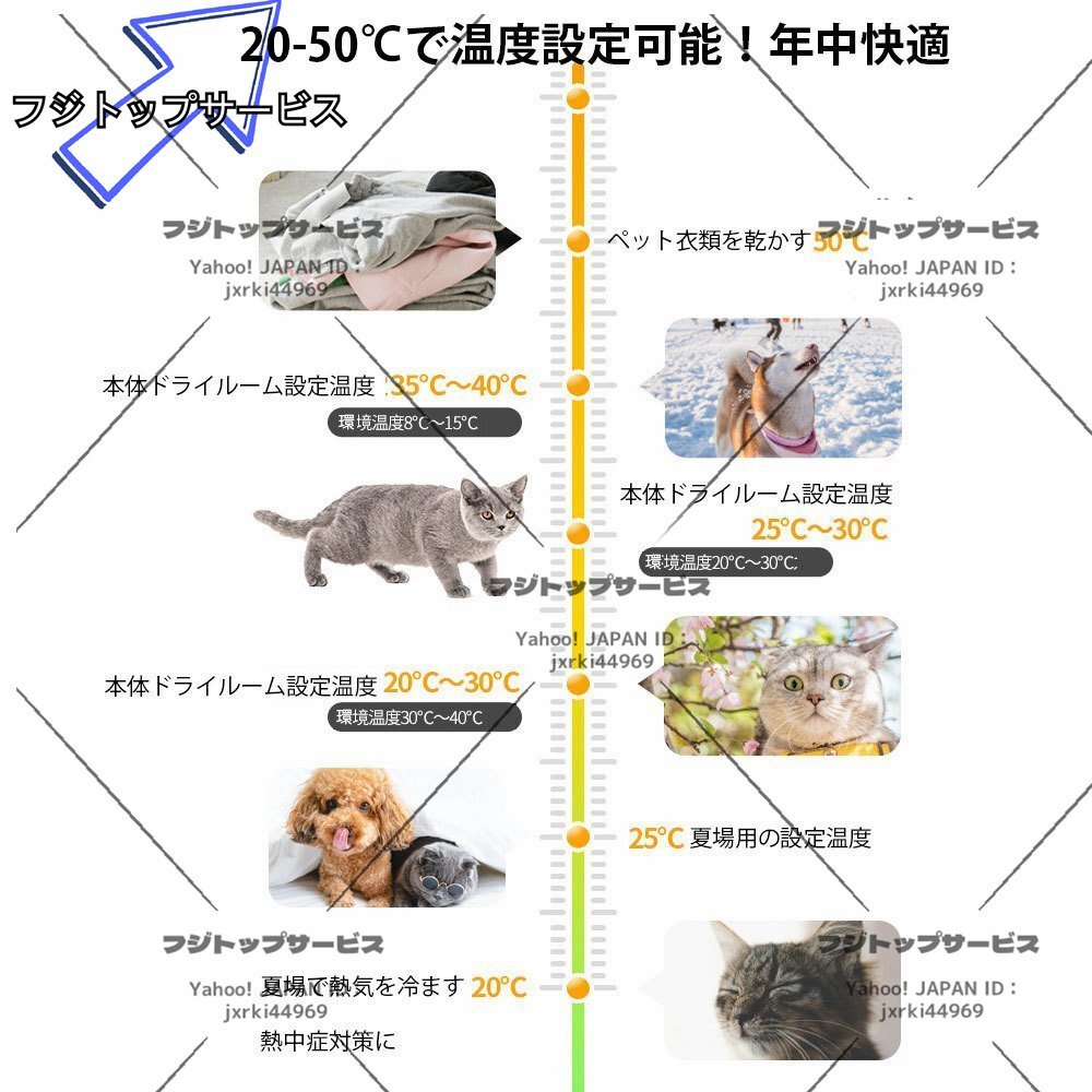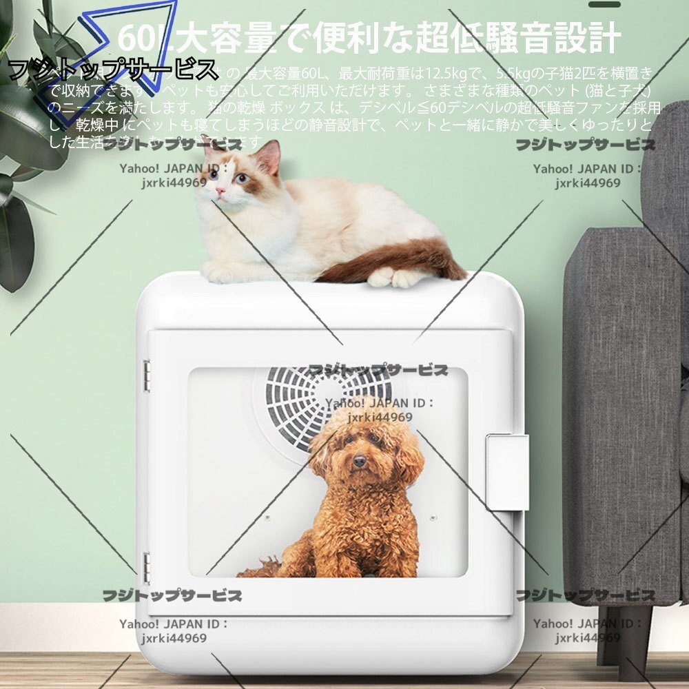 犬 猫 小動物 家庭用 ペットドライルーム 60L大容量 ドライハウス 静音 ドライヤーハウス ハンズフリー 自動 速乾 20-50℃温度調節可能