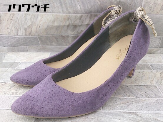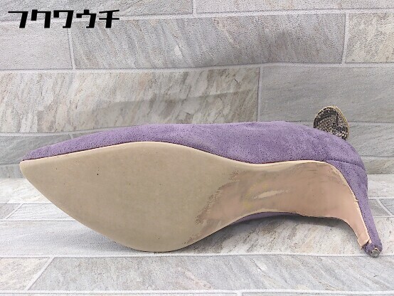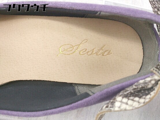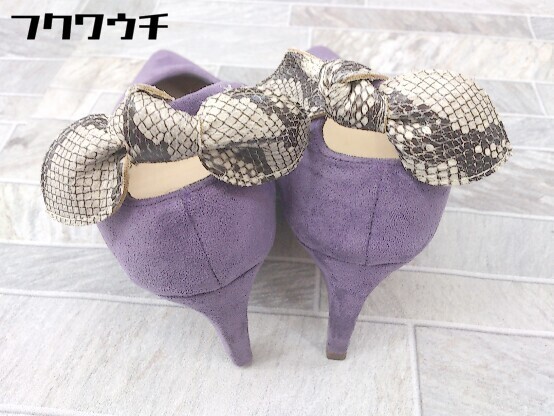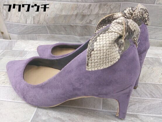 ◇ SESTO セスト ポインテッドトゥ ヒール パイソン柄 リボン パンプス サイズ22.5 パープル レディース